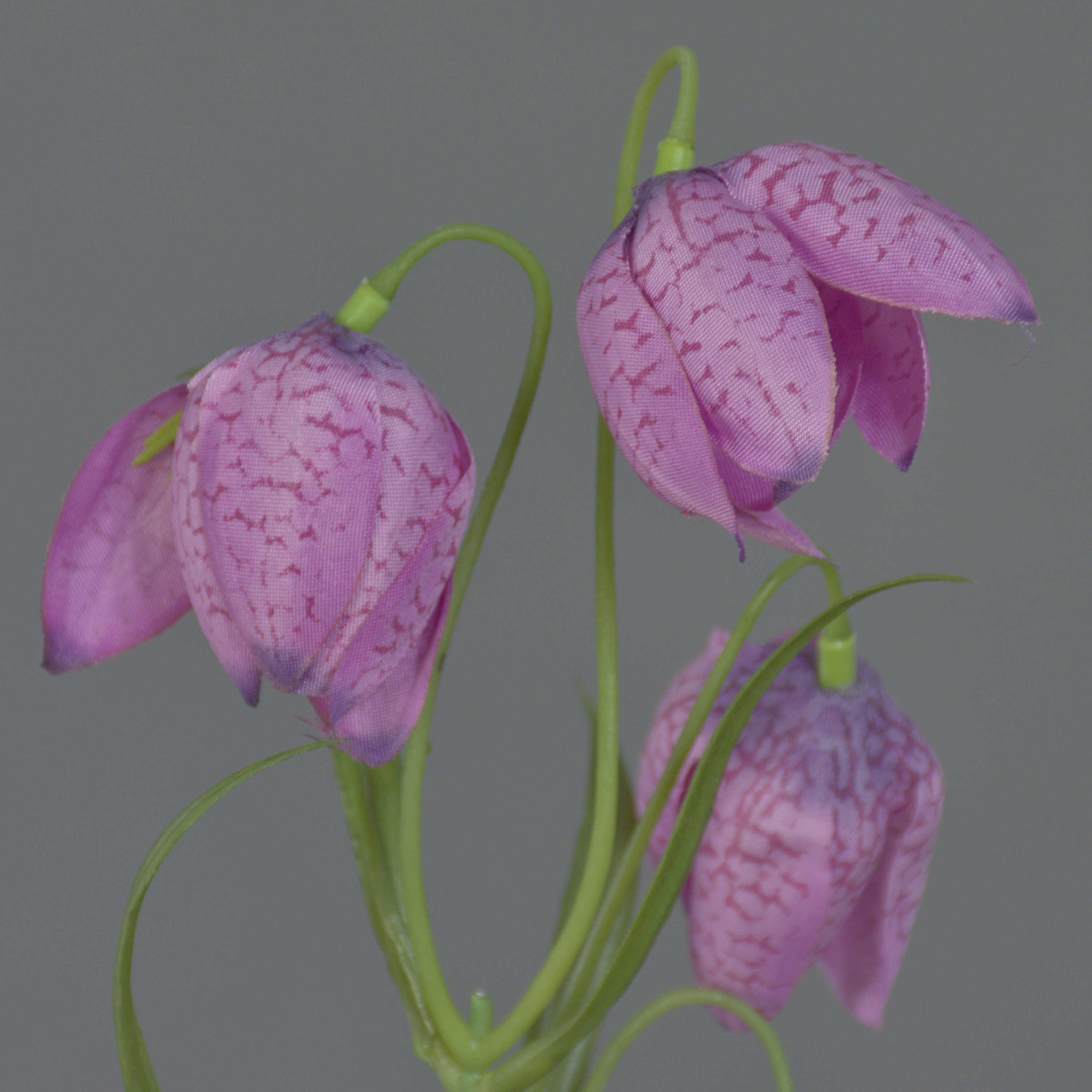 La fritillaria artificiale SANEM di colore lila ha un diametro del fiore di ca. 3 cm. Grazie ai suoi rami e alla sua forma a foglia appuntita, questa pianta è perfetta per un vaso a stelo.