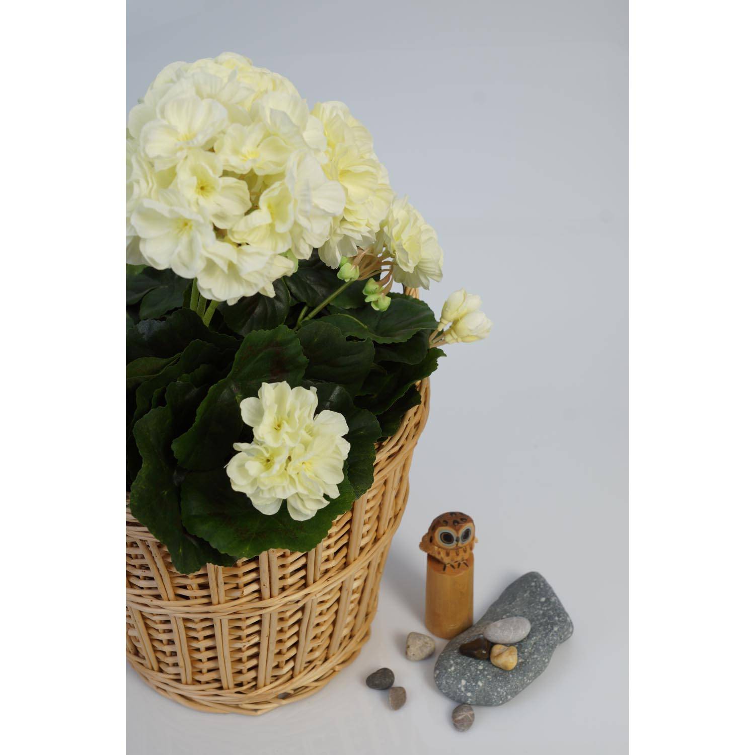 Geranio artificiale MIA per balconi e terrazzi di casa. Il geranio ha fiori e germogli bianchi ed è alto ca. 35 cm.