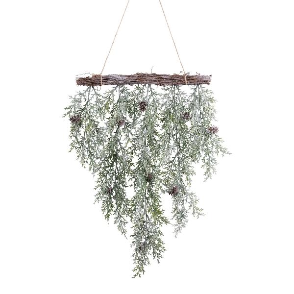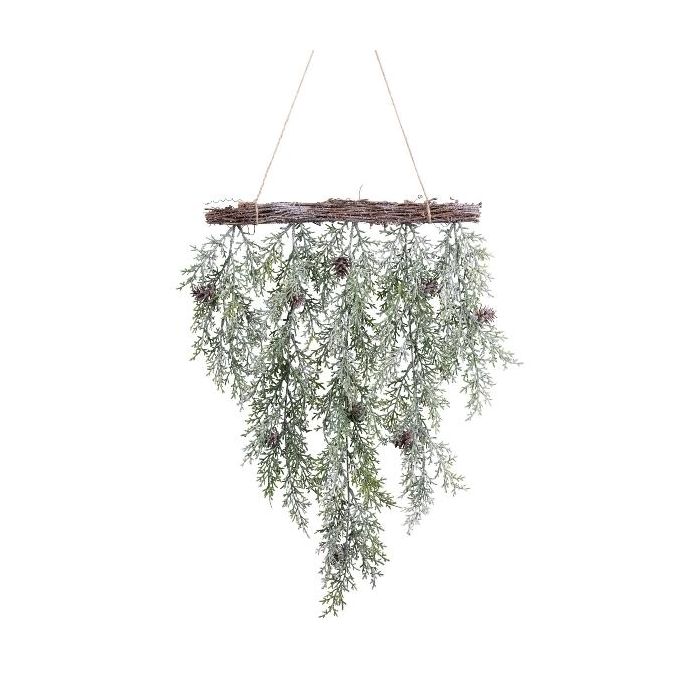 Ghirlanda artificiale da soffitto di cipresso DINSA con pigne, congelata, verde-bianca, 55 cm