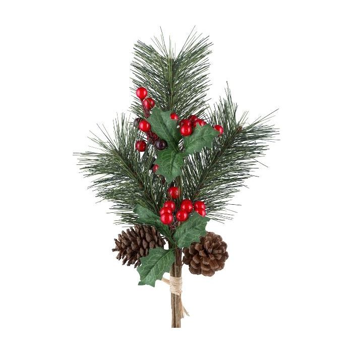 Ghirlanda artificiale di agrifoglio TULVA, bacche, pigne, rossa, 35 cm