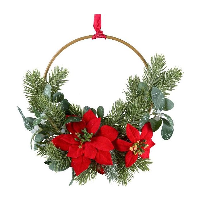 Ghirlanda decorativa Anello floreale Stella di Natale KIRLO, bacche, rosso, Ø 26 cm
