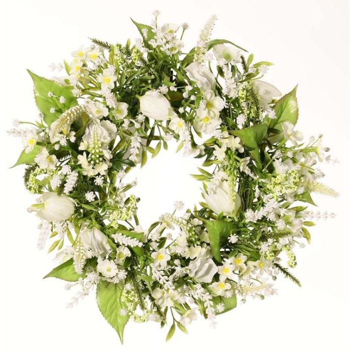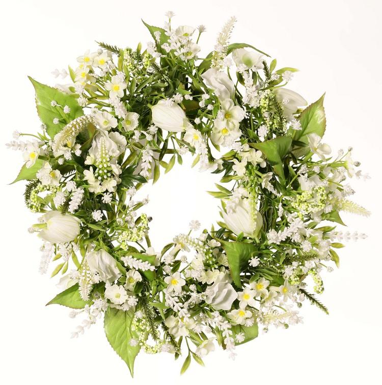 Ghirlanda decorativa estiva FEDORA, lavanda, lathyrus, bianco, Ø 30 cm