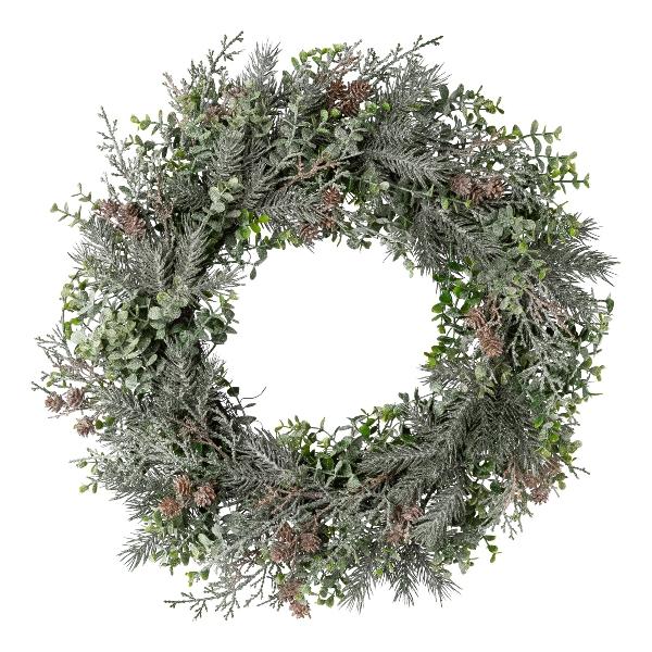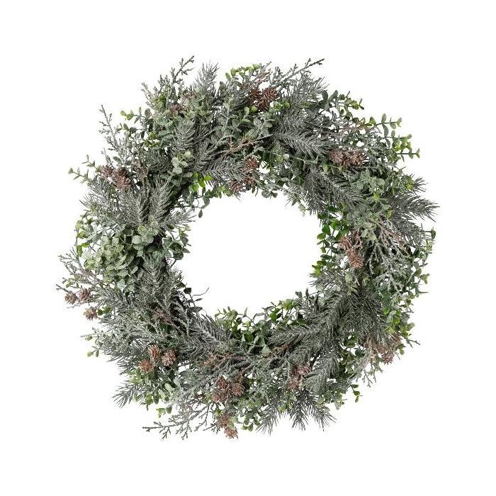 Ghirlanda decorativa eucalipto, abete, cipresso CAVRO, ghiacciata, pigne, bianco-verde, Ø 50 cm