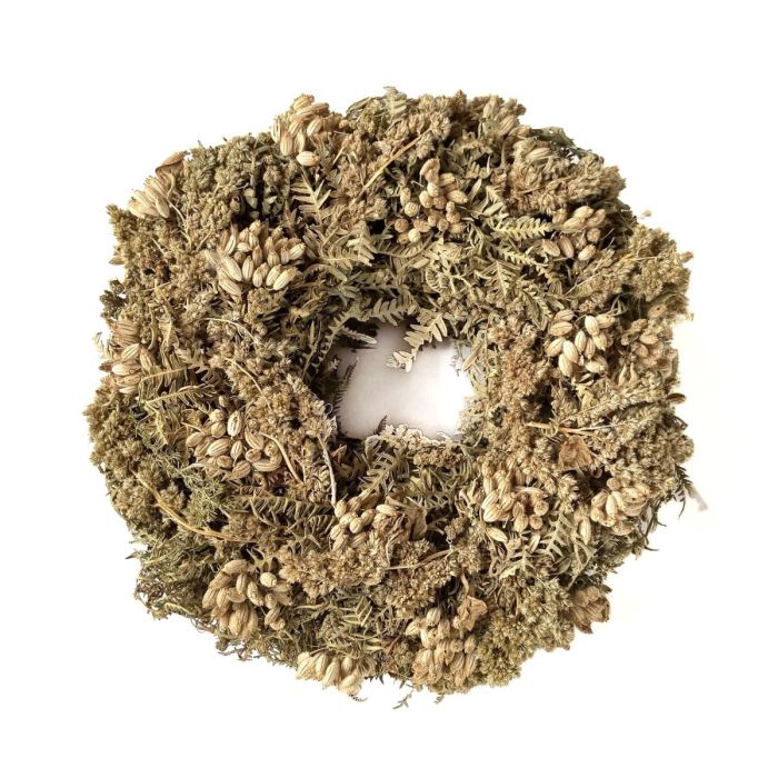 - Anello di fiori secchi con rametti secchi, finocchiaccio e pannocchie
