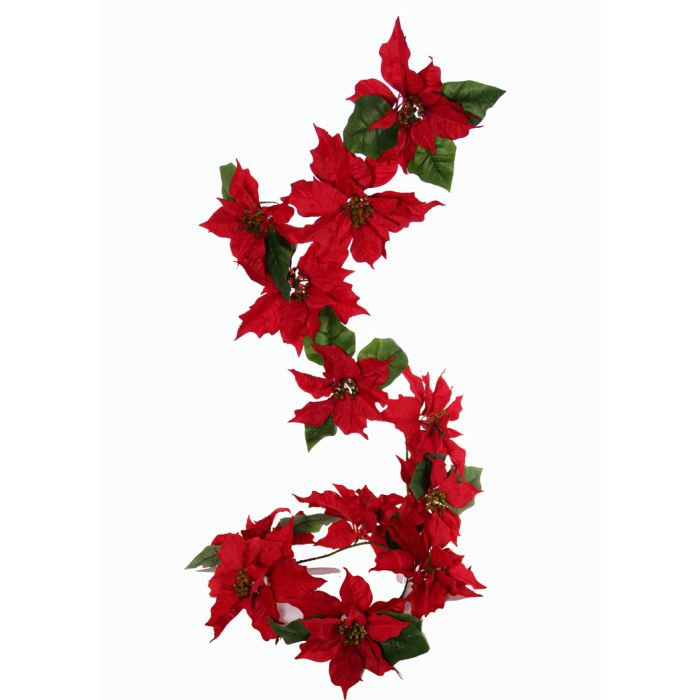 Ghirlanda finta di poinsettia TISHA, rosso, 180cm, Ø18-23cm