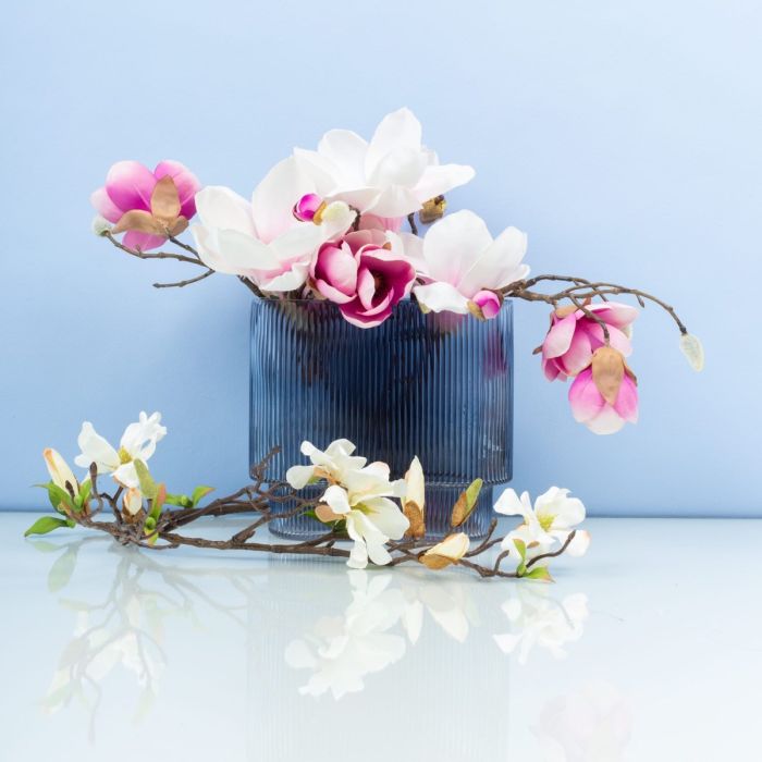 Blu come il cielo! Le magnolie deliziano i cuori di molti all'inizio dell'estate e sembrano impressionanti ed eleganti grazie ai loro grandi fiori. Anche questo fiore merita grande ammirazione, considerando che fioriva già nel periodo Cretaceo. A ciò che probabilmente i dinosauri apprezzavano meno, rendiamo un omaggio speciale. La bellezza di questi fiori è particolarmente evidenziata nel vaso ovale blu reale e non richiede alcun accessorio.Acquista il look!