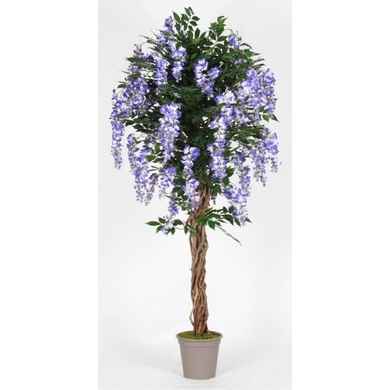 Glicine artificiale ANNIARA, tronchi veri, con fiori, lilla, 200 cm - Made in Italy