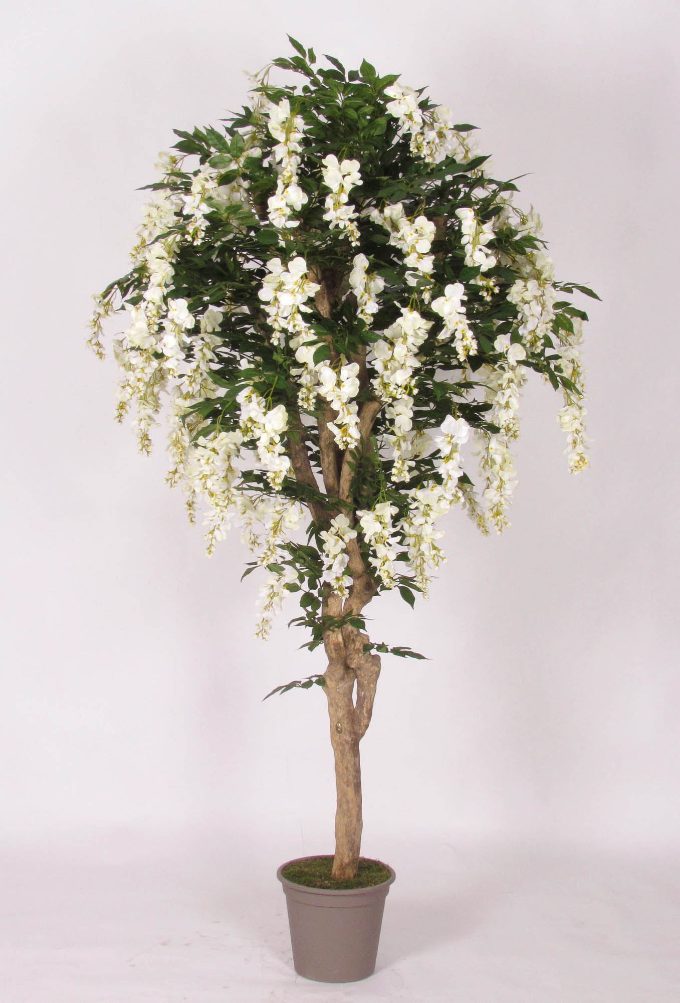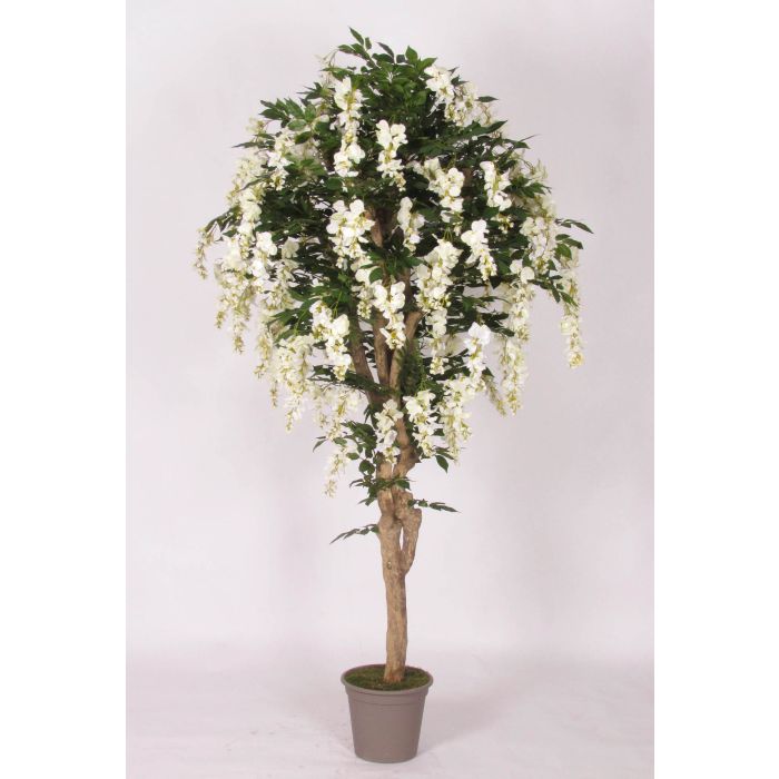 Glicine finto ERLINA, tronco vero, con fiori, bianco, 200 cm - Made in Italy