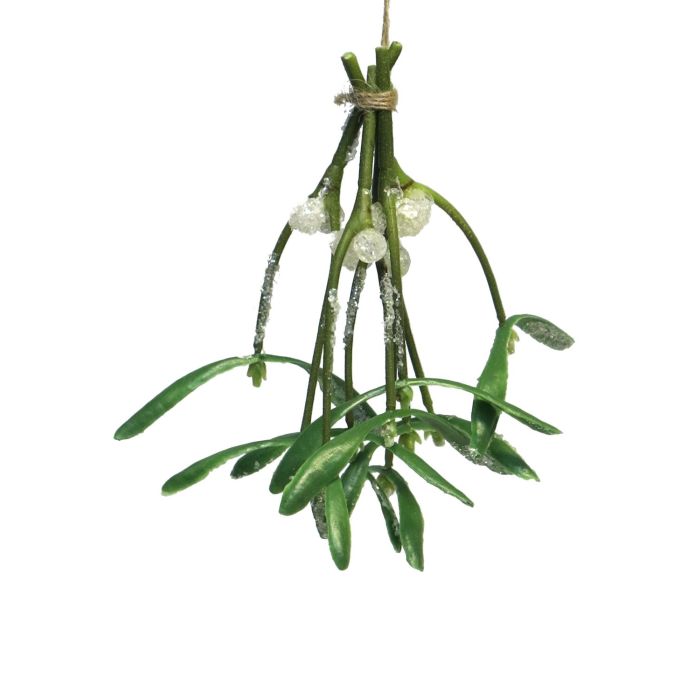 Grappolo di vischio con bacche bianche NUORAN, ghiacciato, frutti, verde, 15cm
