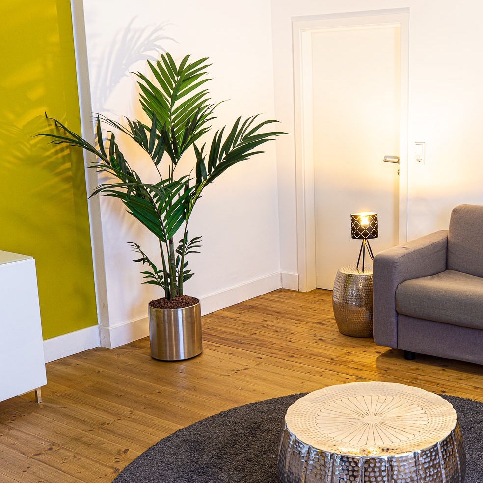 Una tranquilla compagna di appartamento con un effetto calmante! Le nostre piante d'appartamento rendono ogni stanza più accogliente e, grazie al loro effetto ombreggiante, anche più confortevole. La nostra palma si adatta semplicemente a qualsiasi stanza e crea un'atmosfera accogliente anche negli angoli più spenti. La fioriera è un vero classico che si adatta ovunque grazie al suo design elegante. Il bello è che è dotata di rotelle, in modo da poter spostare la vostra pianta d'appartamento in qualsiasi momento e senza troppa fatica. Acquista il look!