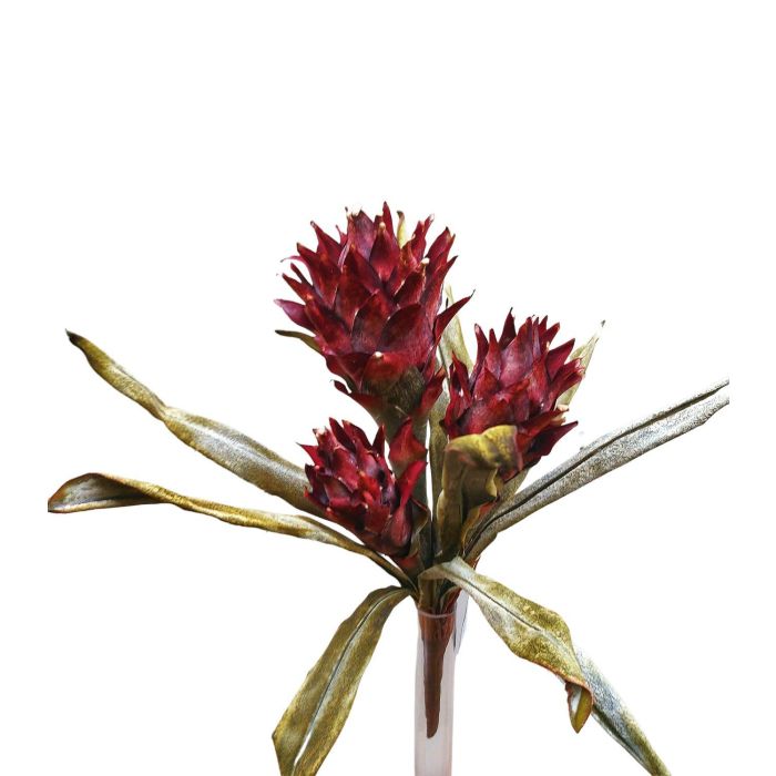 Guzmania bromelia artificiale WALFRIEDE su stelo, rosso bordeaux, 50 cm