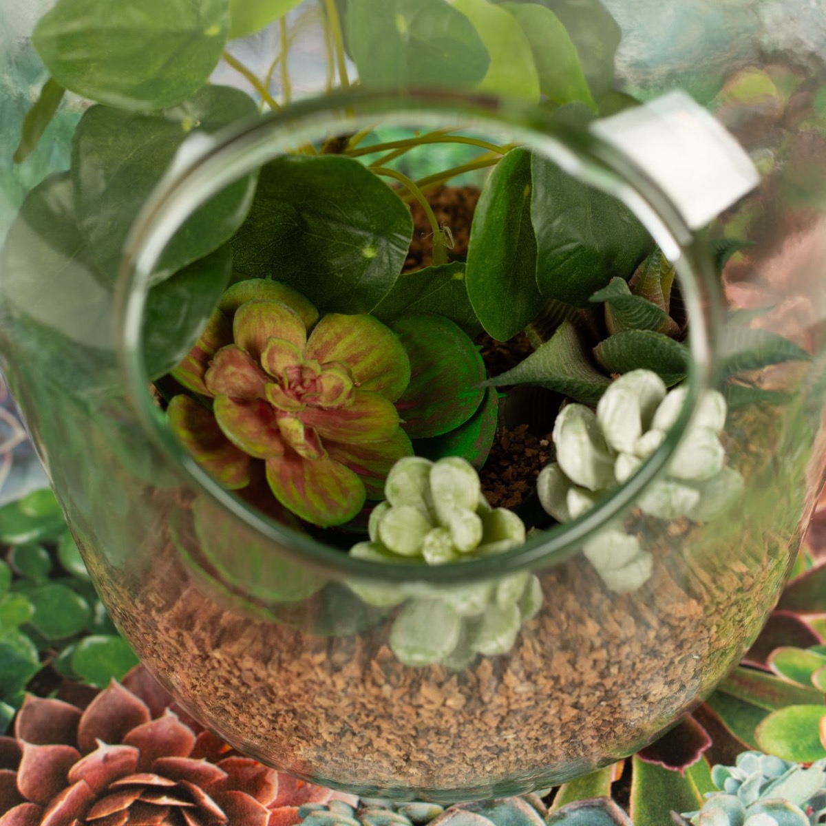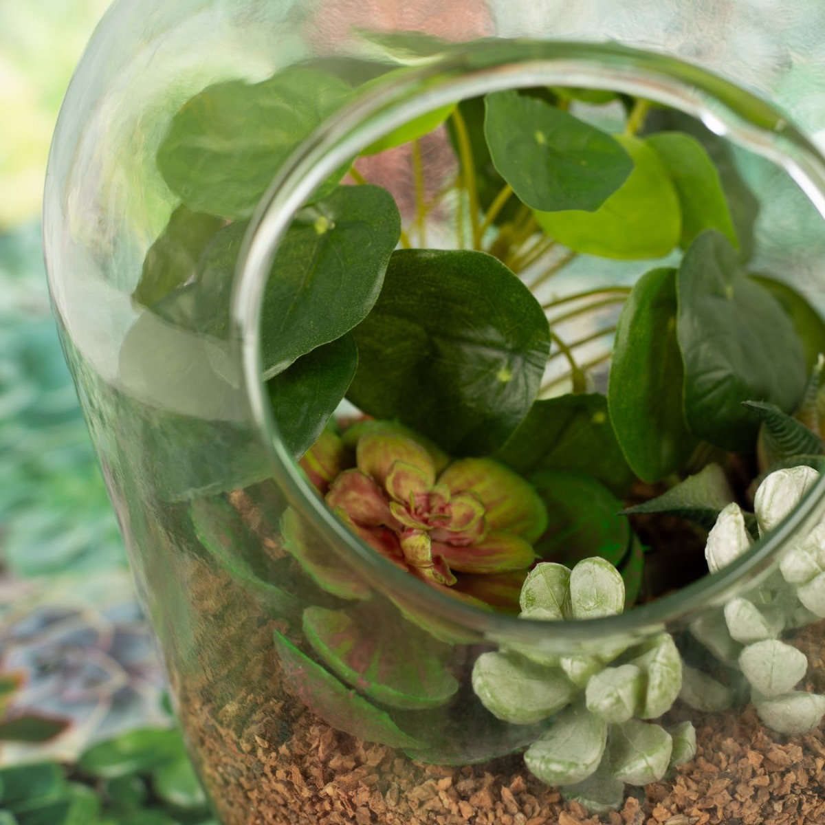 Succulente - una delizia sempreverde! Se vi piacciono le cose semplici ed eleganti, le succulente fanno al caso vostro. Queste piante sembrano piccole opere d'arte e la varietà di questo tipo di piante è incredibilmente ampia. Poiché le piante grasse sono per lo più piuttosto piccole, si adattano ovunque come decorazione. Sia in piccoli vasi che in bottiglie, come qui, nel nostro look. Creano sempre un'atmosfera naturale e fresca e valorizzano visivamente ogni angolo. Il nostro look è particolarmente adatto come decorazione per il bagno. Acquista il look!