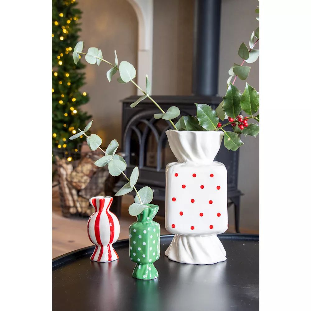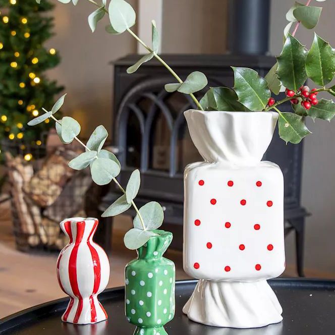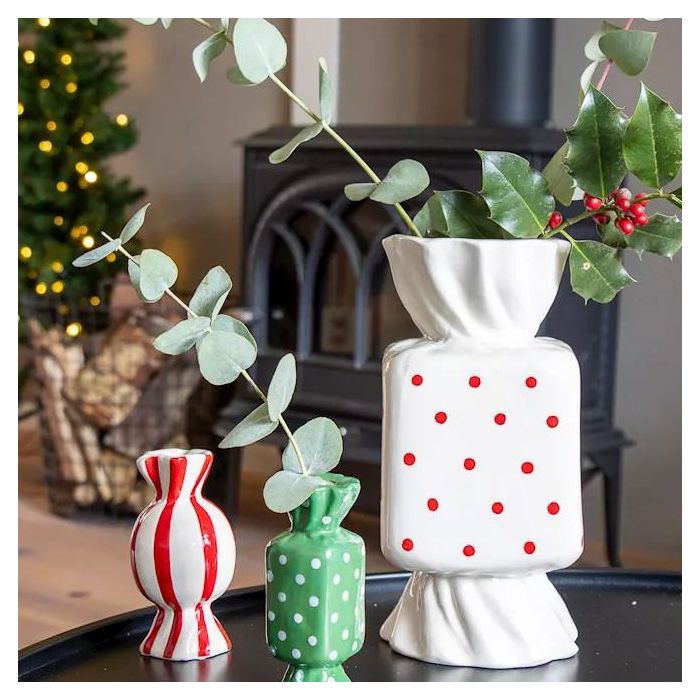 Tocchi di colore per momenti festivi! Piccoli e giocosi vasi in ceramica color caramella aggiungono tocchi di colore e trasmettono leggerezza. Decorati in modo minimalista con rami di agrifoglio ed eucalipto, creano affascinanti composizioni invernali che diffondono gioia. Sullo sfondo, un albero di Natale con una ghirlanda luminosa brilla e immerge la scena in una luce calda e magica. Un suggestivo gioco di colori, natura e magia natalizia: perfetto per godersi con stile i momenti invernali. Acquista il look!