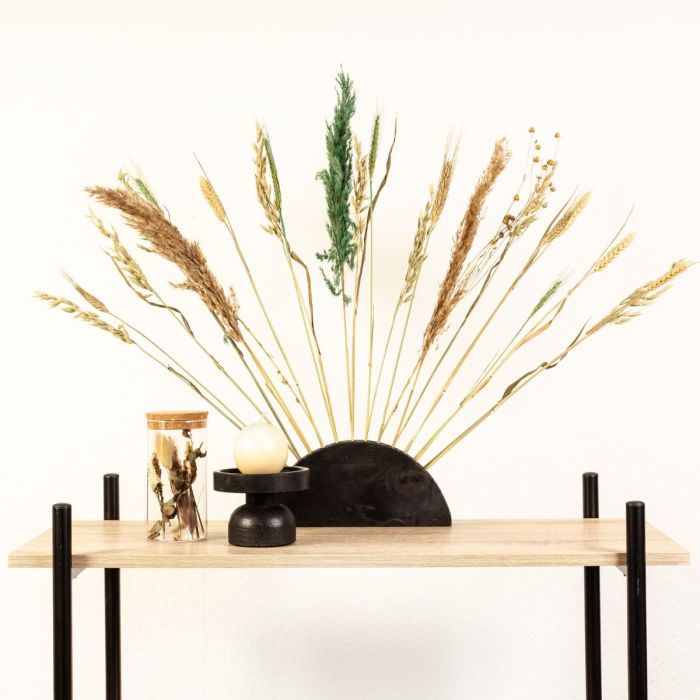 Suggerimento per il design: fai emergere le parti più belle del bouquet di fiori asciutte e dividile in i fori del supporto semicircolare.
