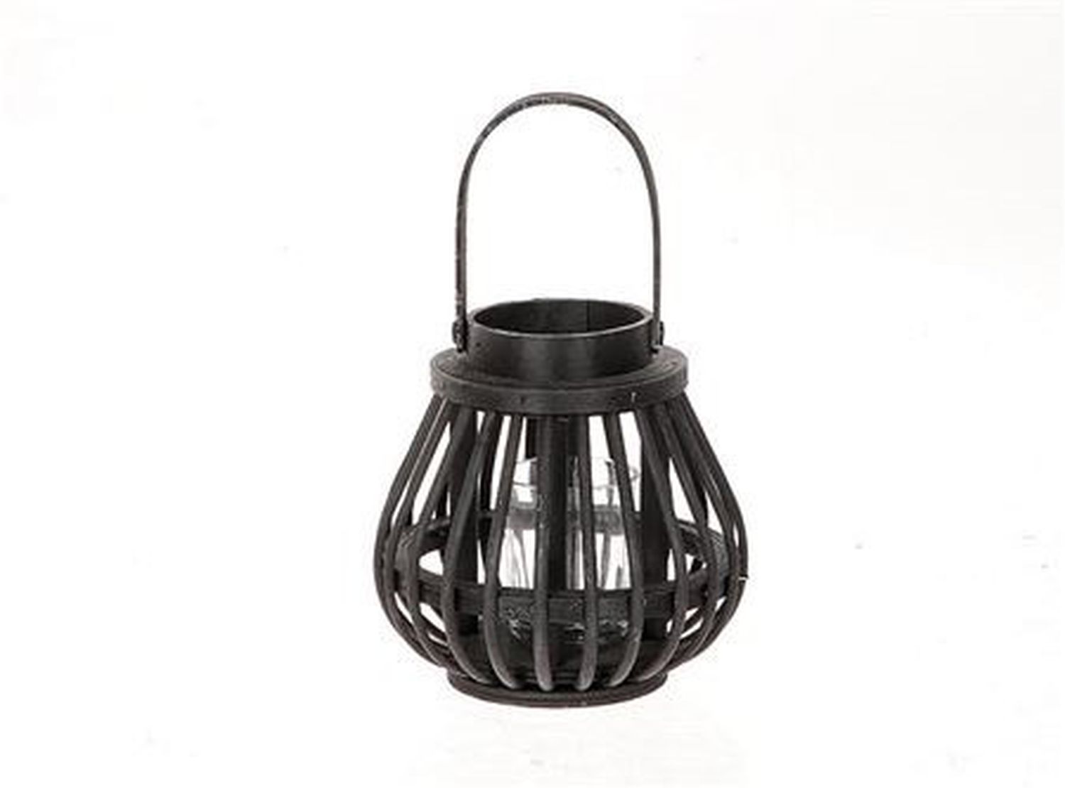 Lanterna CHARITHRA con manico, legno, inserto in vetro, nera, 15 cm, Ø 15,5 cm