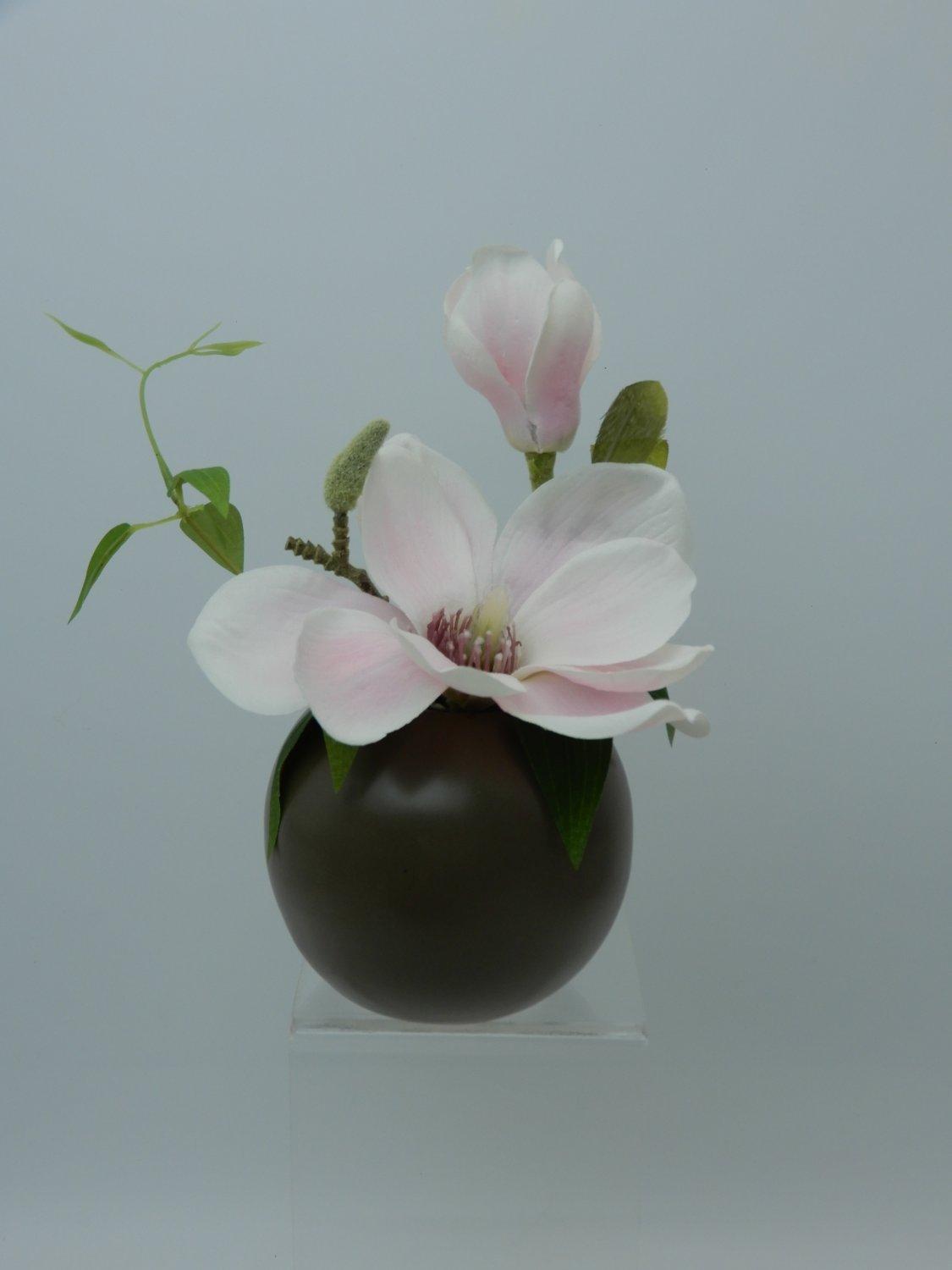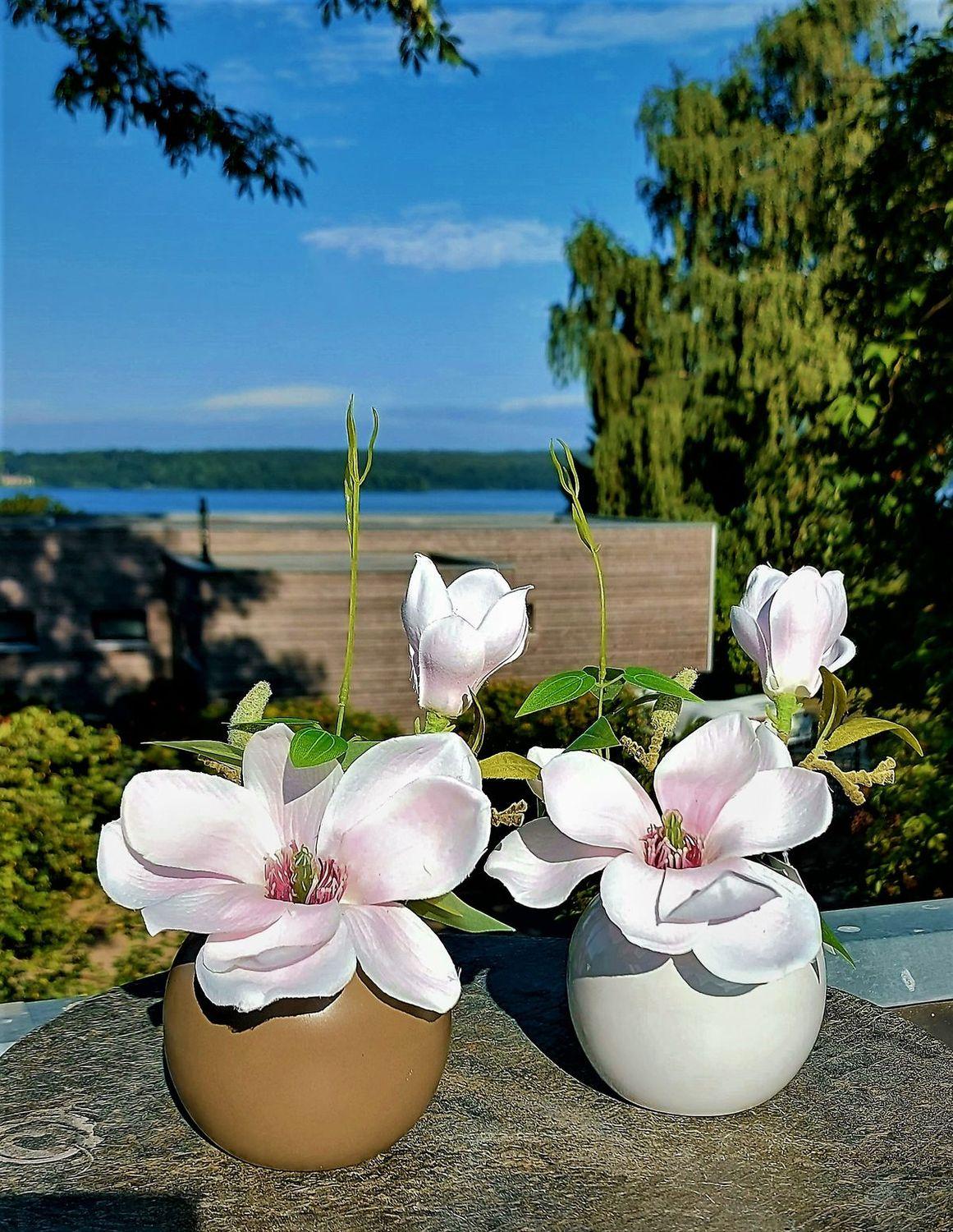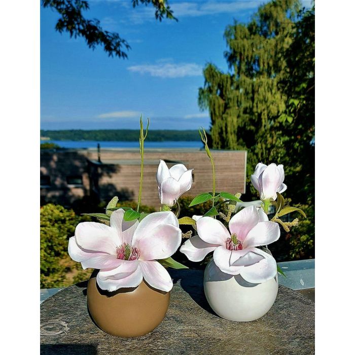 Magnolia artificiale FEMI in vaso di ceramica beige, rosa delicato, 20 cm, Ø 17 cm