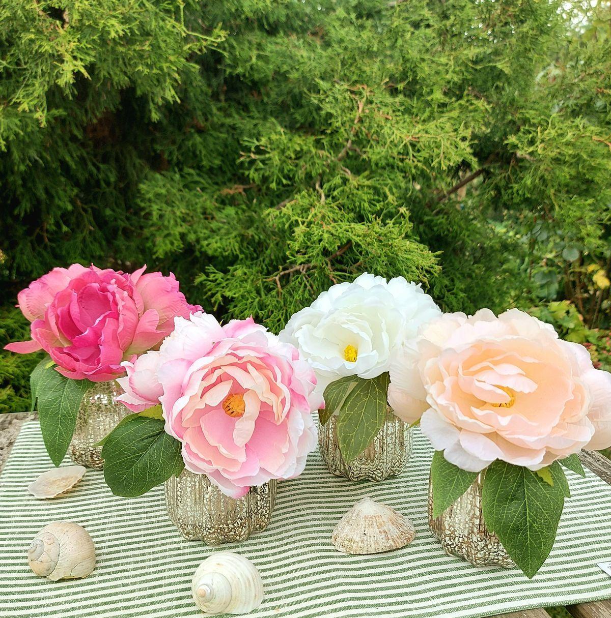 Mazzo di fiori artificiali peonia VEIKO in vaso di vetro, albicocca-crema, 15 cm