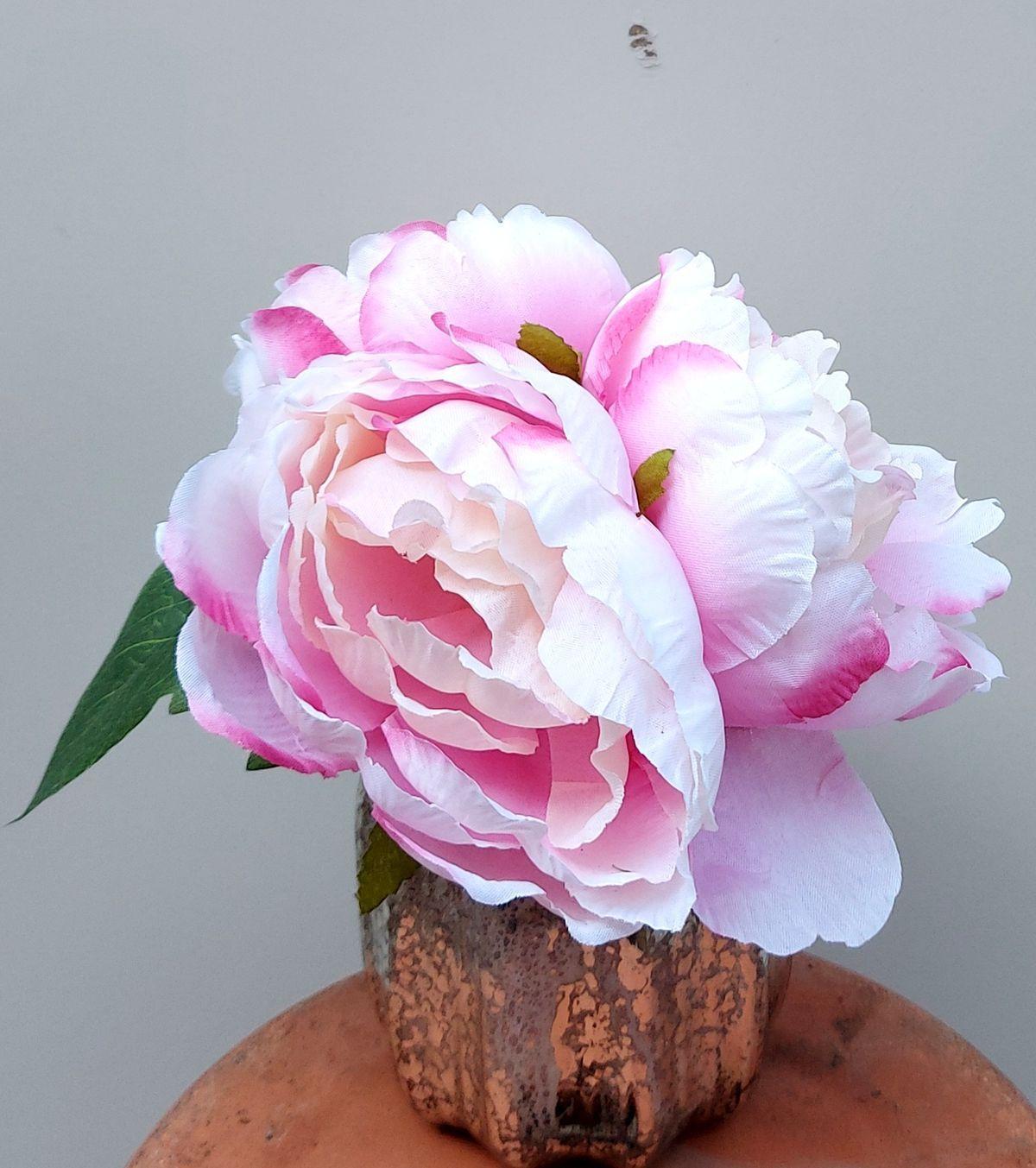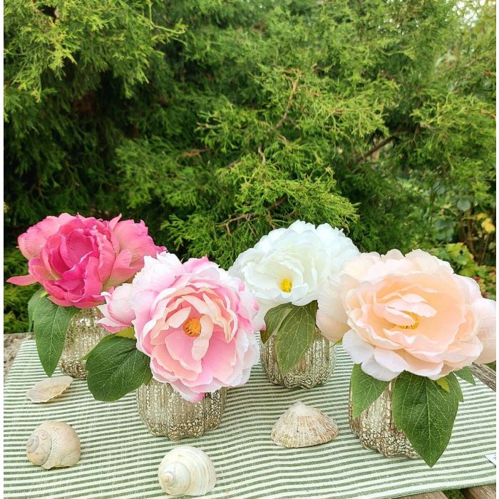 Mazzo di fiori artificiali peonia VEIKO in vaso di vetro, rosa-crema, 15 cm