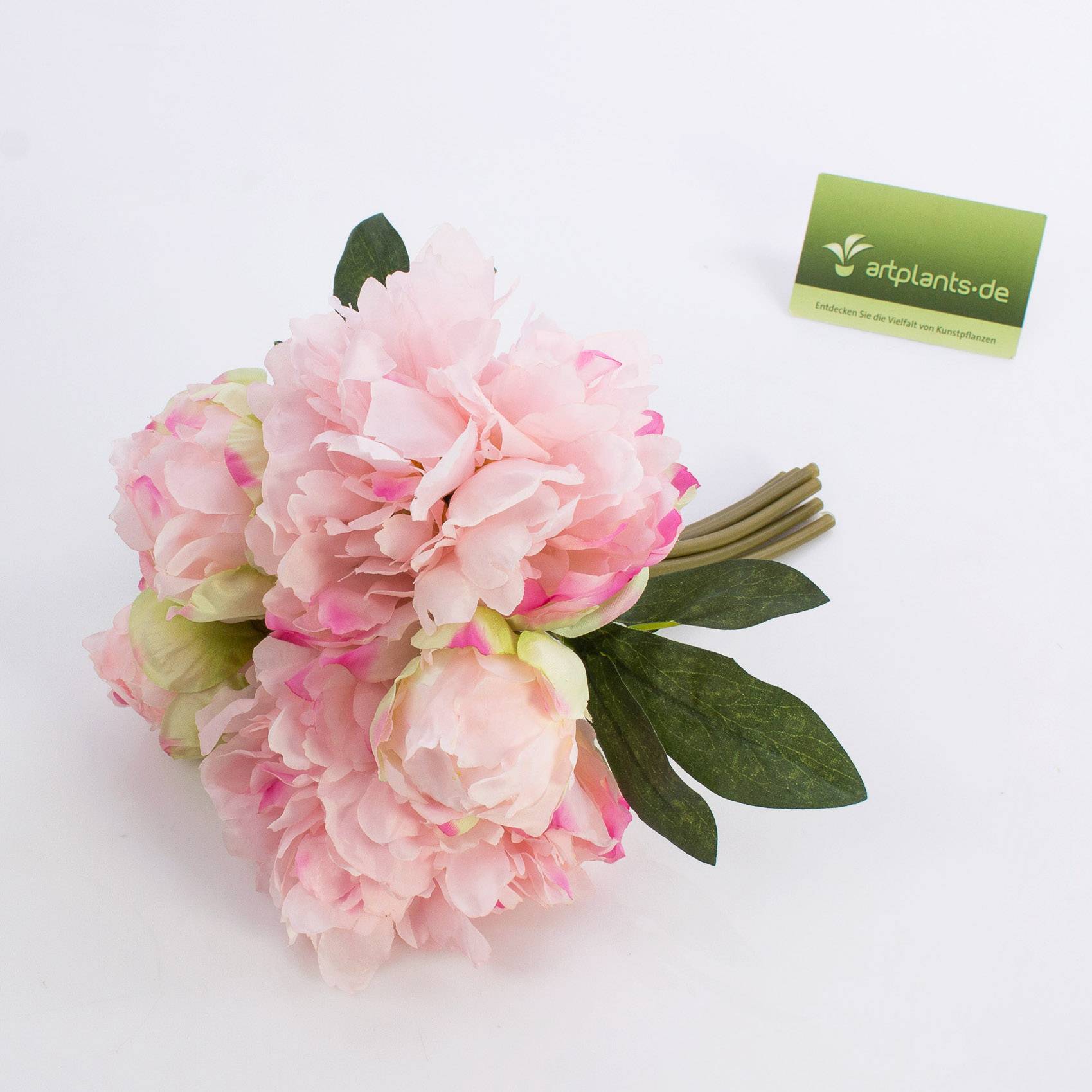 Il bouquet di peonie color rosa misura complessivamente ca. 30 cm in lunghezza. I 5 fiori singoli uniti in mazzo si adattano perfettamente come elemento decorativo estivo da inserire in un grazioso vaso Inna-Glas.