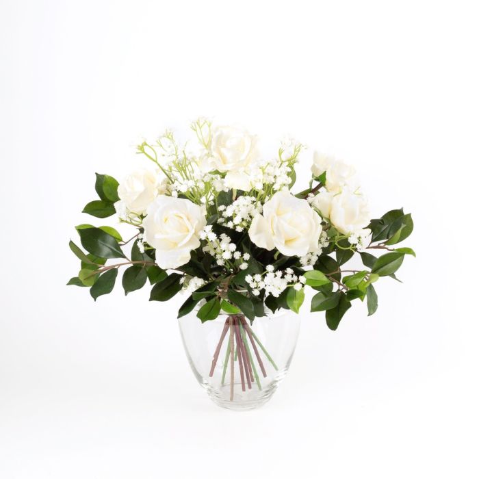 Mazzo di rose artificiali AMELIE, velo di sposa, bianco, 45cm, Ø40cm