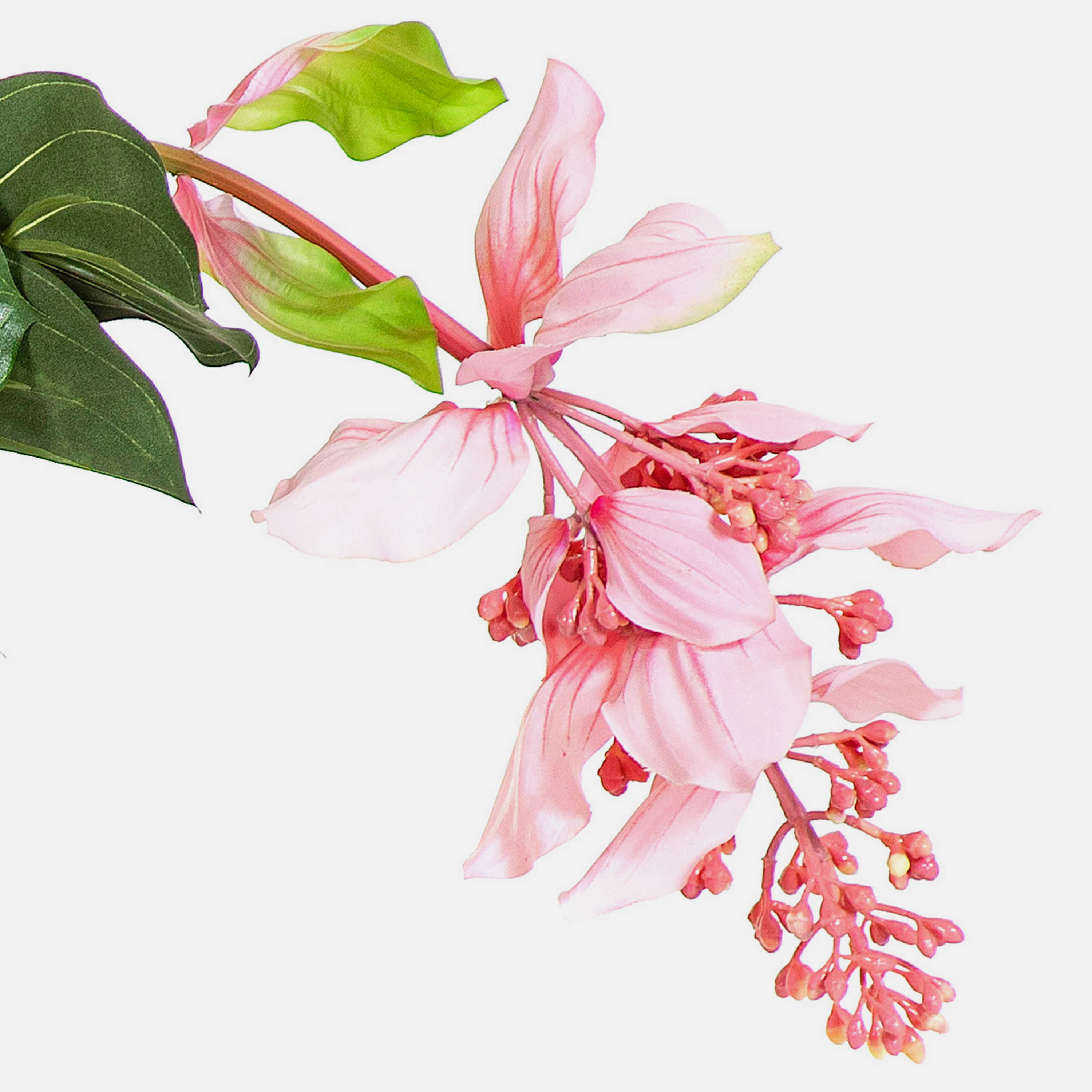Medinilla finta ALDORA di colore rosa. La pianta tropicale impressiona con i suoi grandi fiori cadenti.