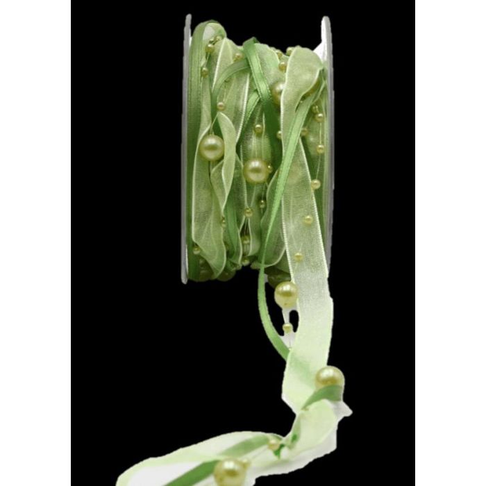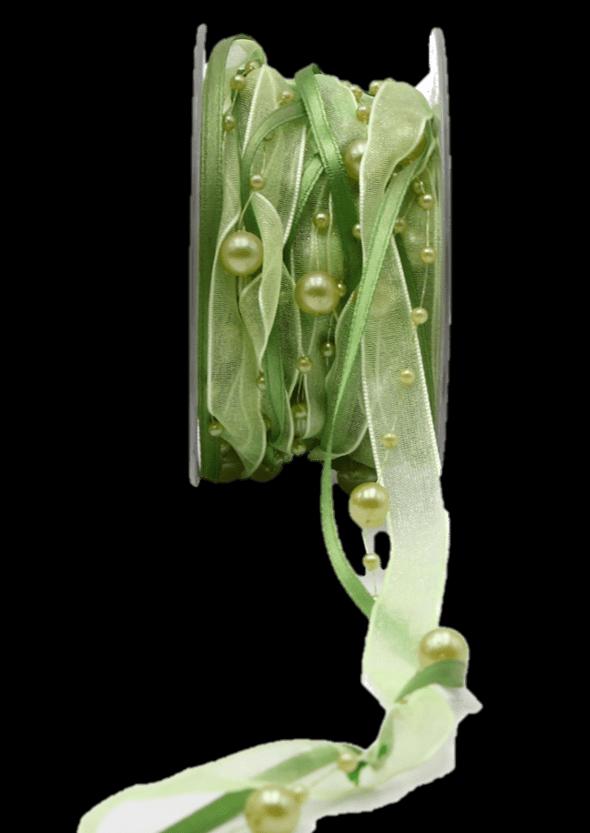 Nastro decorativo CARESA in chiffon e raso, verde, 5 m, 20 mm