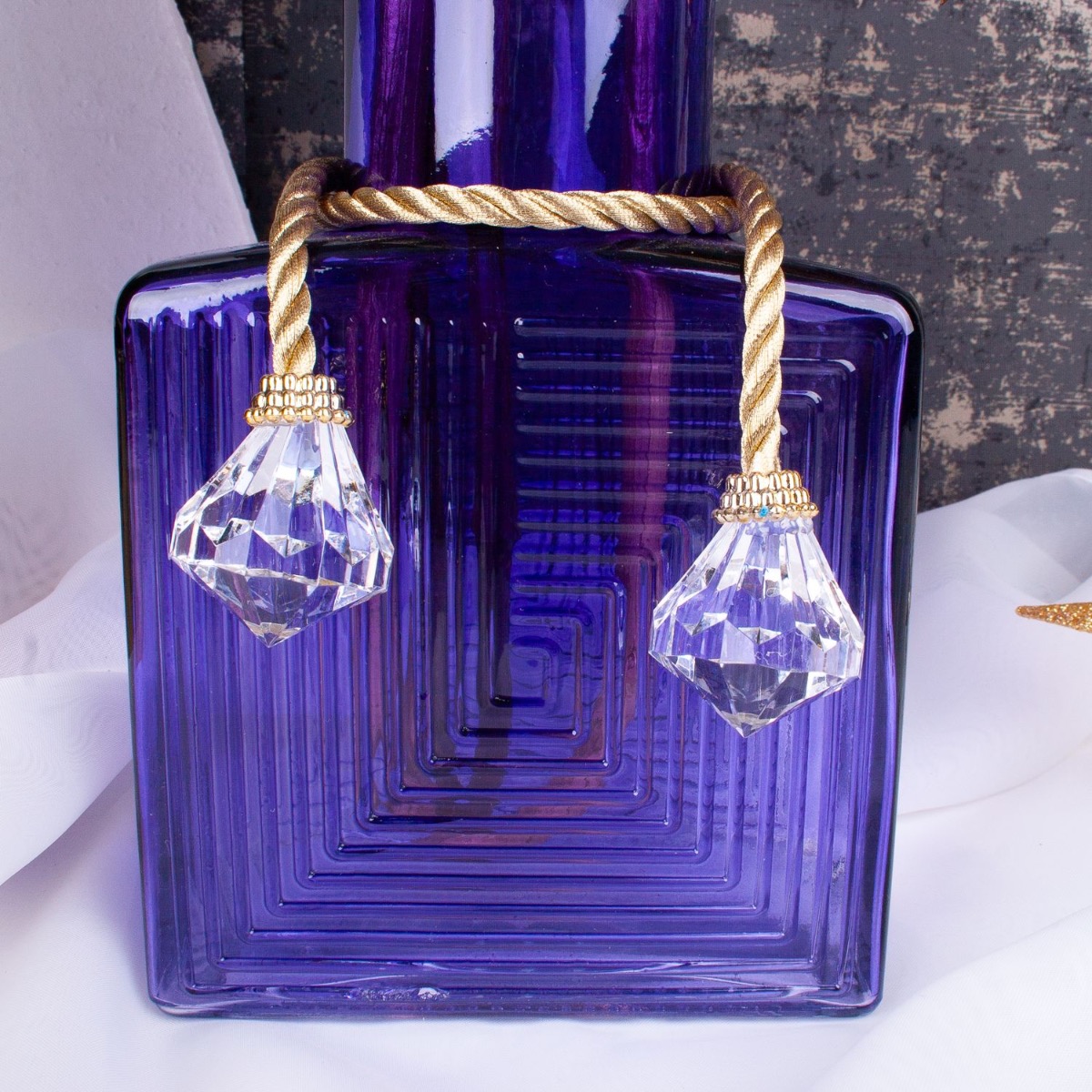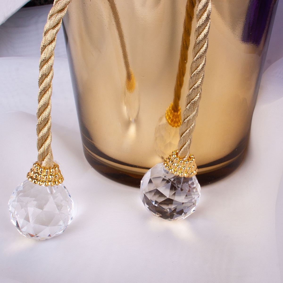 Consiglio per la decorazione: Tagliare i rami in base alle dimensioni del vaso e piegarli. Avvolgere le sfere acriliche sul cordoncino dorato intorno al vaso.