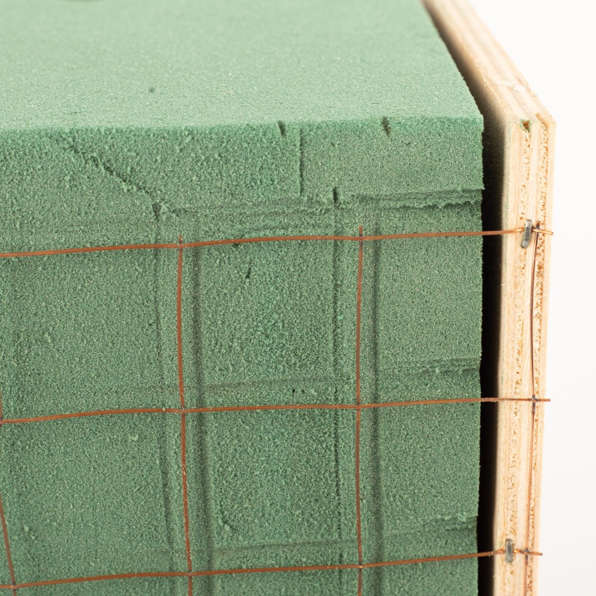 Ökodur Schiuma floreale SERLO con rete metallica, base in legno naturale, verde, 23x11x8,5 cm