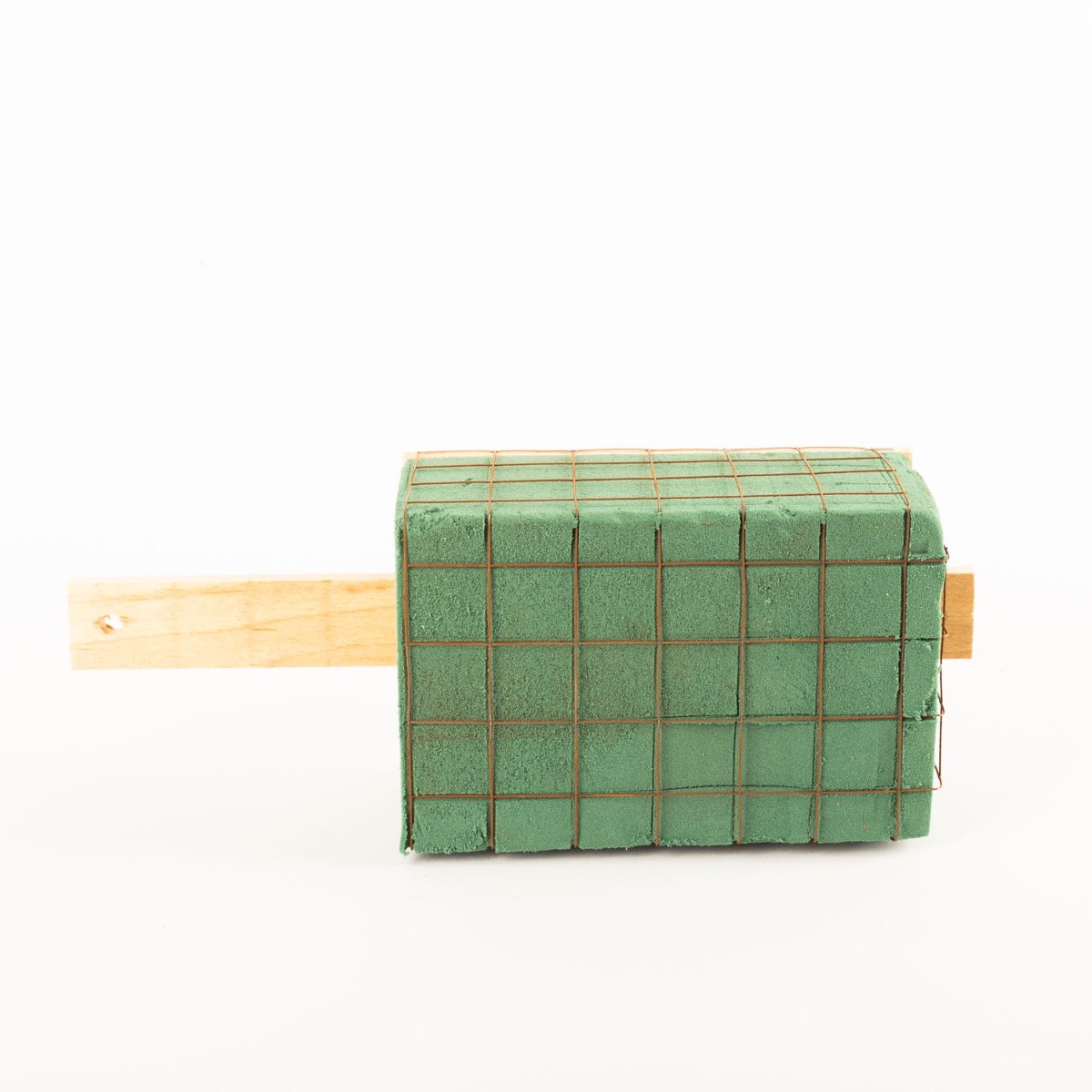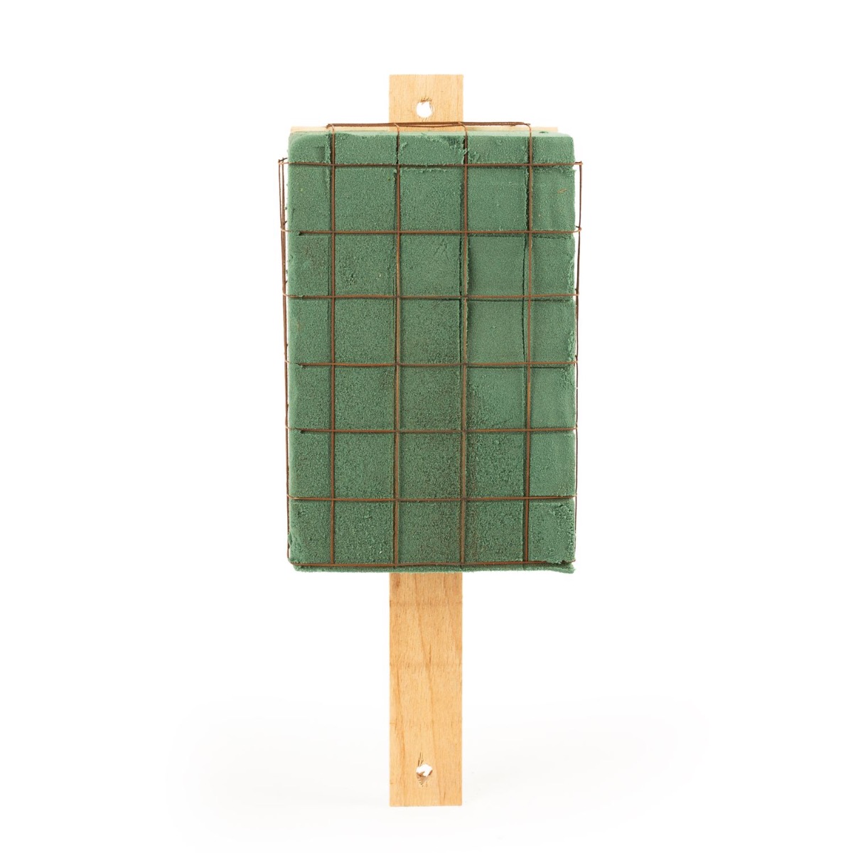 Ökodur Supporto per bouquet funebre EINAR con schiuma floreale, rete metallica, manico, base in legno naturale, verde, 17x11x8,5 cm