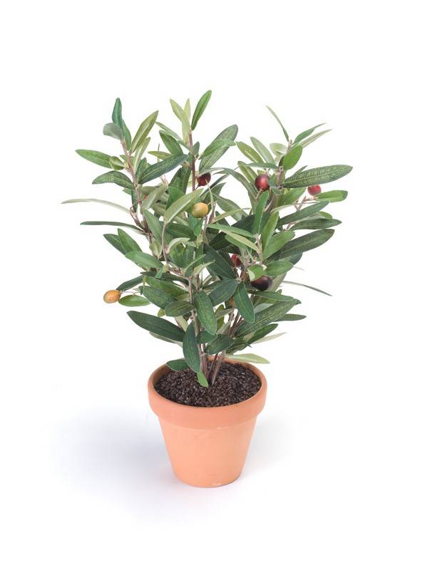 Olivo artificiale ALBERTO in vaso di terracotta, frutti, 40cm