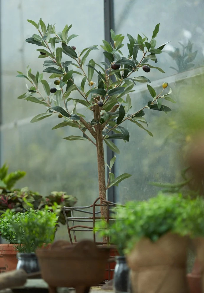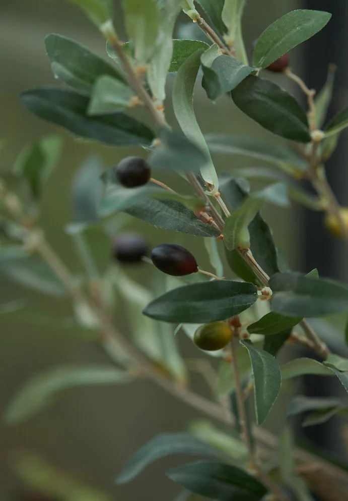 Olivo artificiale ALBERTO, tronco vero, con frutti, 65cm