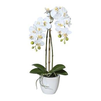 Orchidea artificiale Phalaenopsis LARKEN in vaso di ceramica, radici, bianca, 45 cm