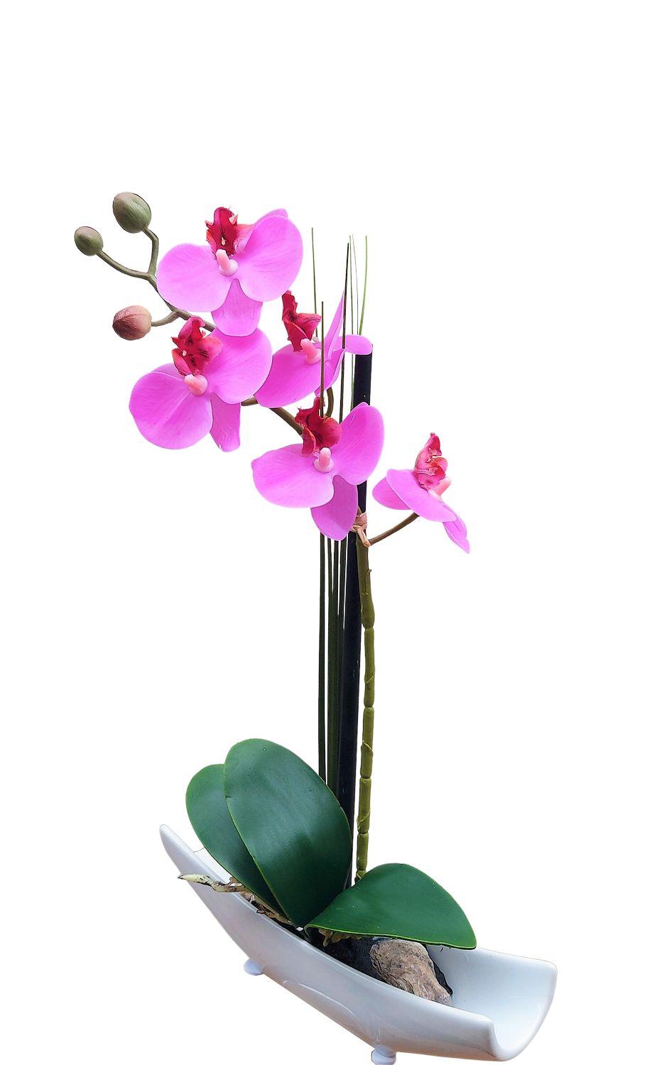 Orchidea artificiale Phalaenopsis YANNIE, canna, vaso in ceramica, cerise, 30 cm