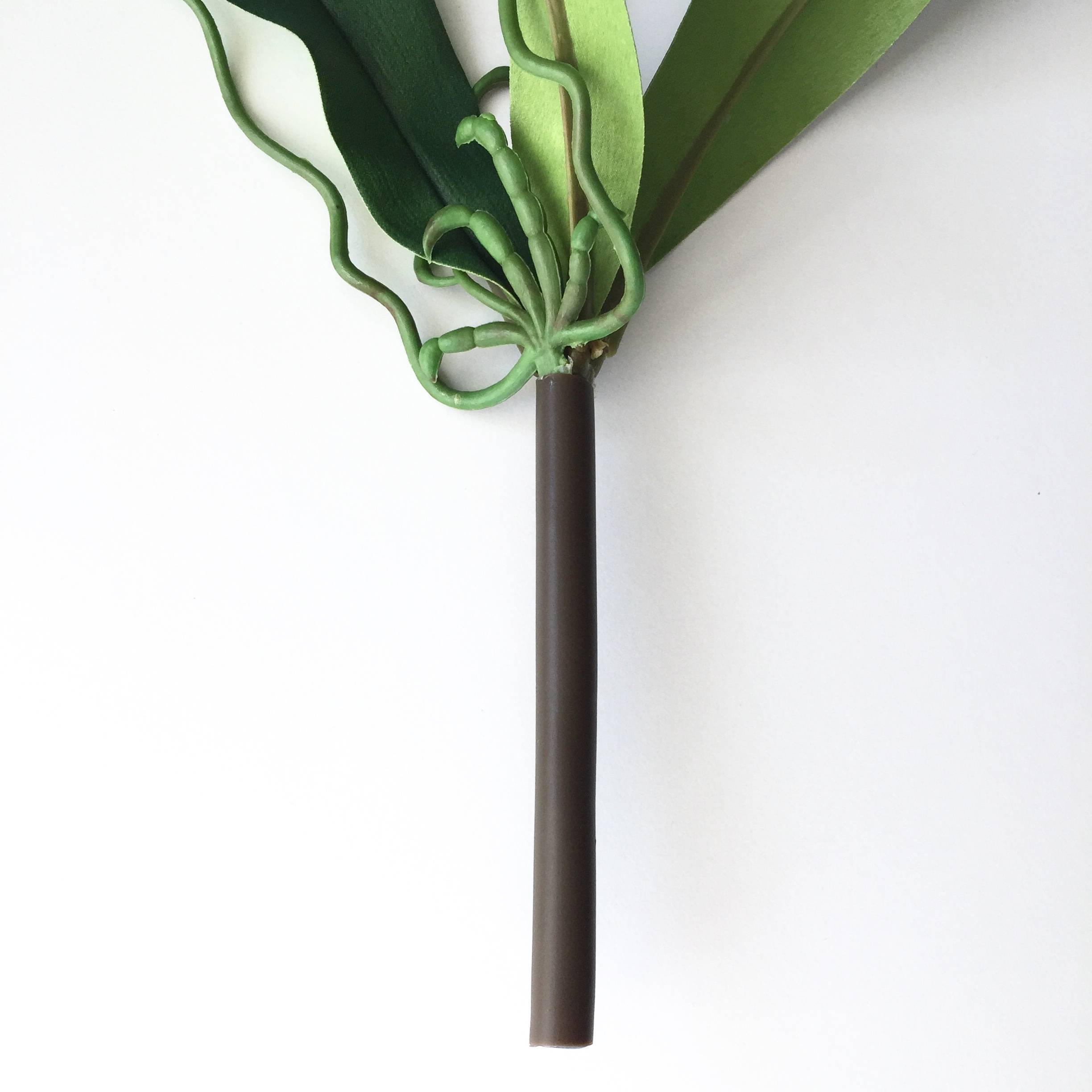 - Un fiore a strisce di colore viola e verde, reale al tatto, 3 foglie verdi brillanti e radici aeree