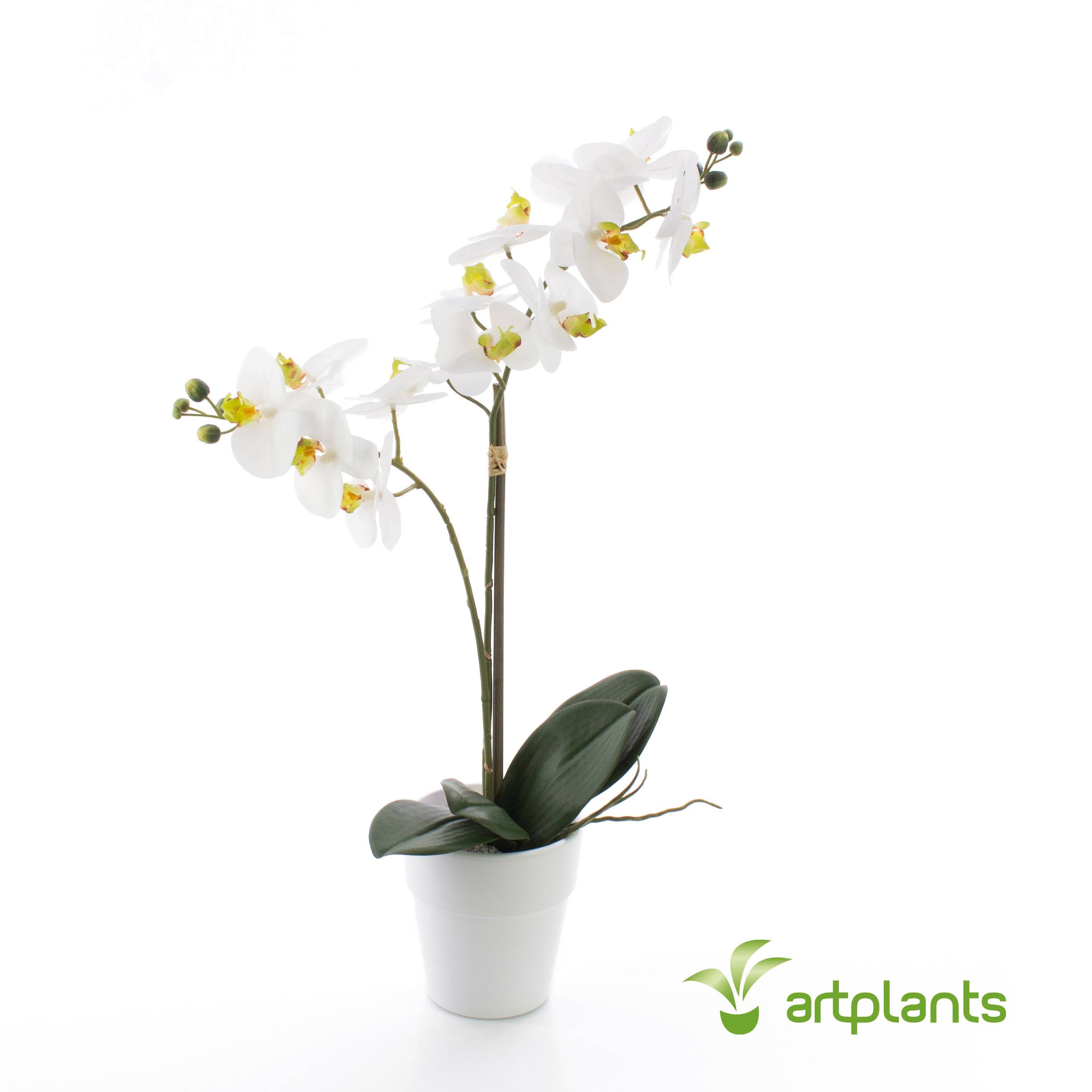 L'orchidea artificiale (Phalaenopsis) CANDIDA con due infiorescenze di colore bianco-verde è un'elegante elemento decorativo aggiuntivo per salotti, camere da letto oppure sale da pranzo.