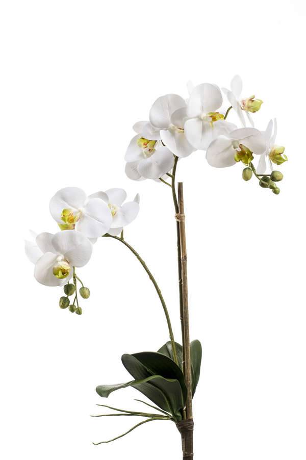 L'orchidea artificiale (Phalaenopsis) CANDIDA con due infiorescenze di colore bianco-verde è un'elegante elemento decorativo aggiuntivo per salotti, camere da letto oppure sale da pranzo.