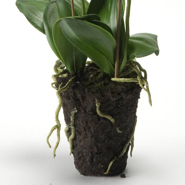 - Con ca. 12 foglie di orchidea di colore verde scuro, ricalcanti le foglie naturali.