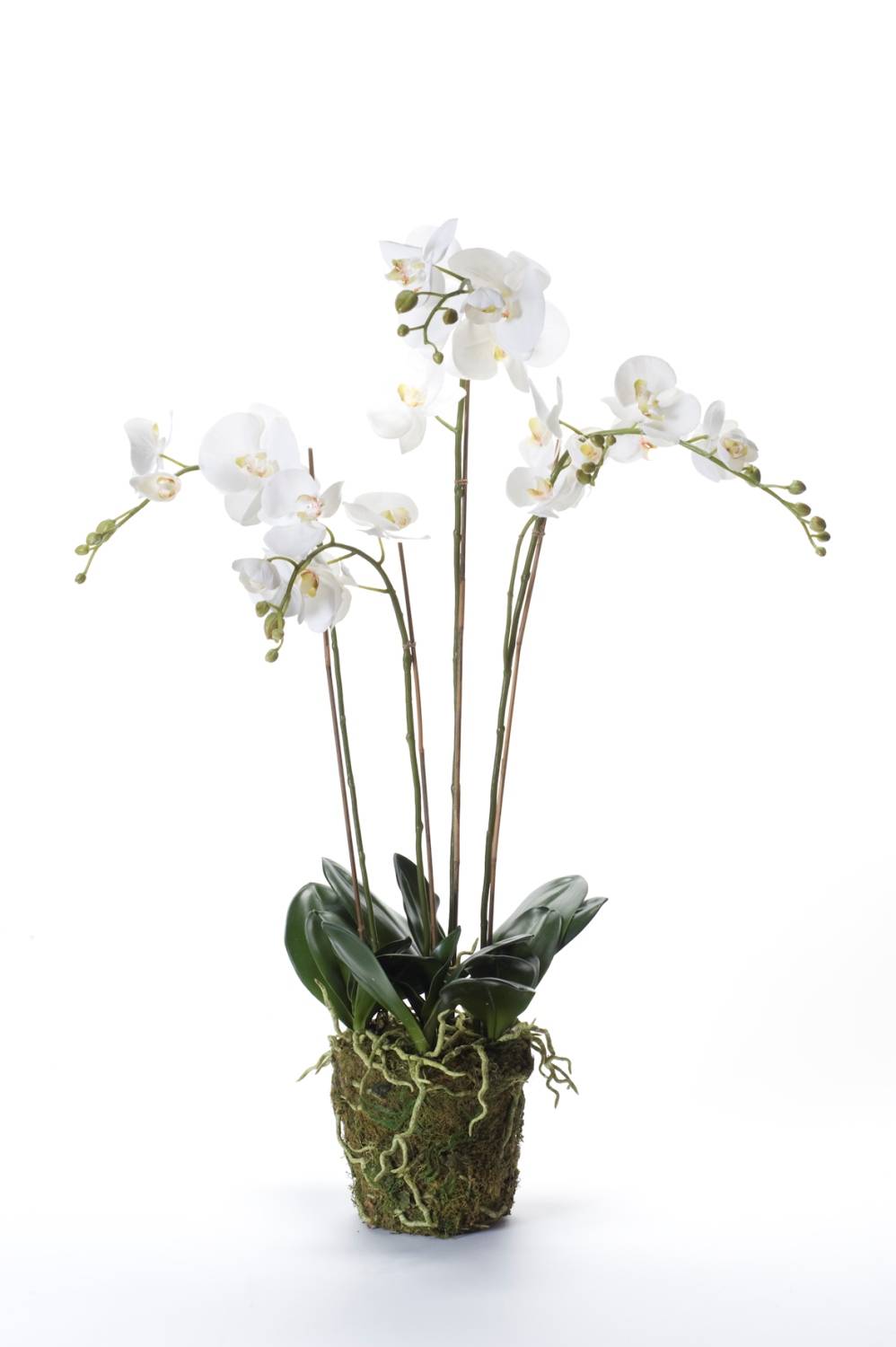Orchidea finta PABLA con terriccio, bianco, 90cm, Ø10-13cm