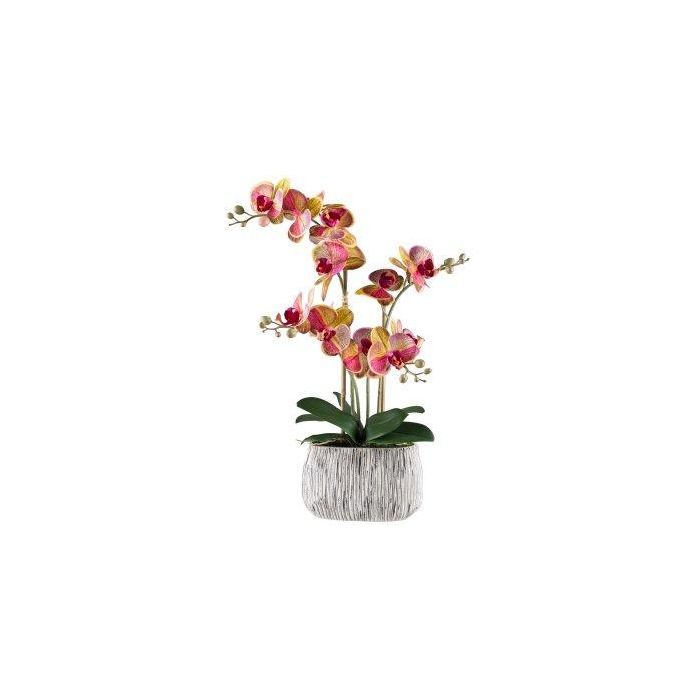 Orchidea Phalaenopsis artificiale BLORVEN, vaso in cemento, radici, giallo-rosa, 55 cm