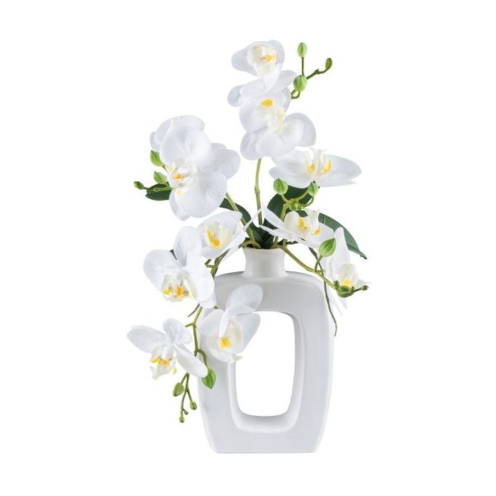 Orchidea Phalaenopsis artificiale DRUKLON, vaso in ceramica, radici, bianco, 40 cm