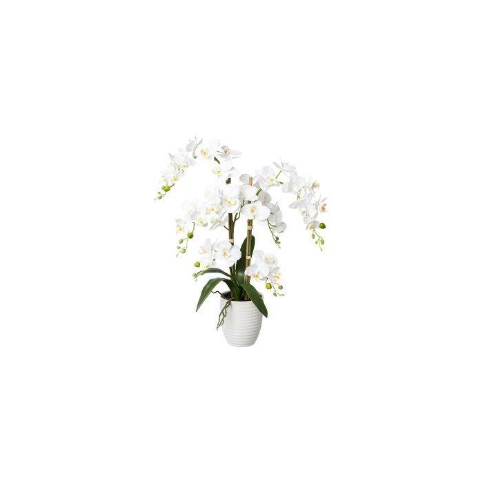 Orchidea Phalaenopsis artificiale LUKREN in vaso di ceramica, radici, bianca, 65 cm