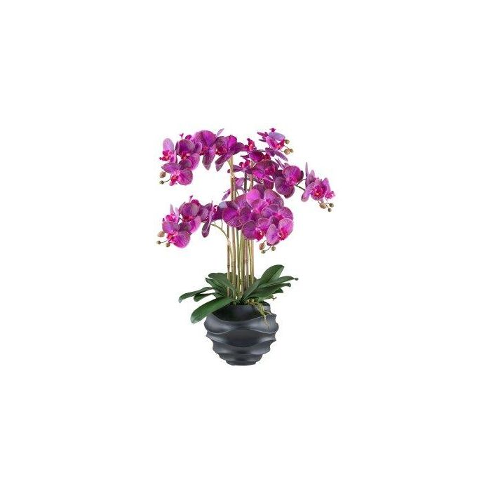 Orchidea Phalaenopsis artificiale STONFER, vaso decorativo nero, radici, viola, 70 cm