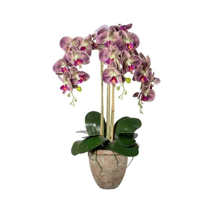 Orchidea Phalaenopsis in tessuto FRIMTOR in vaso di terracotta, radici, verde-lilla, 75 cm