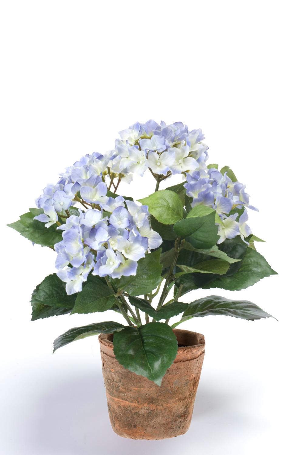 Ortensia artificiale LAIDA in vaso di terracotta, blu chiaro, 35cm