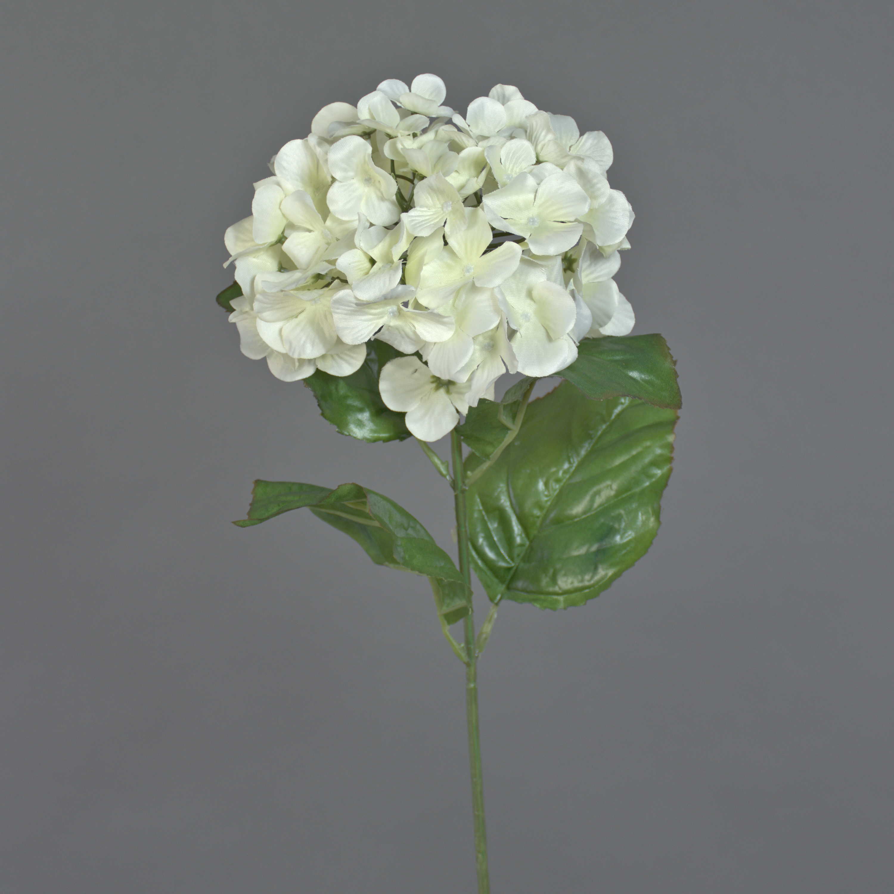 Ramo di ortensia artificiale di colore crema. Il fiore ha una lunghezza di ca. 70 cm.