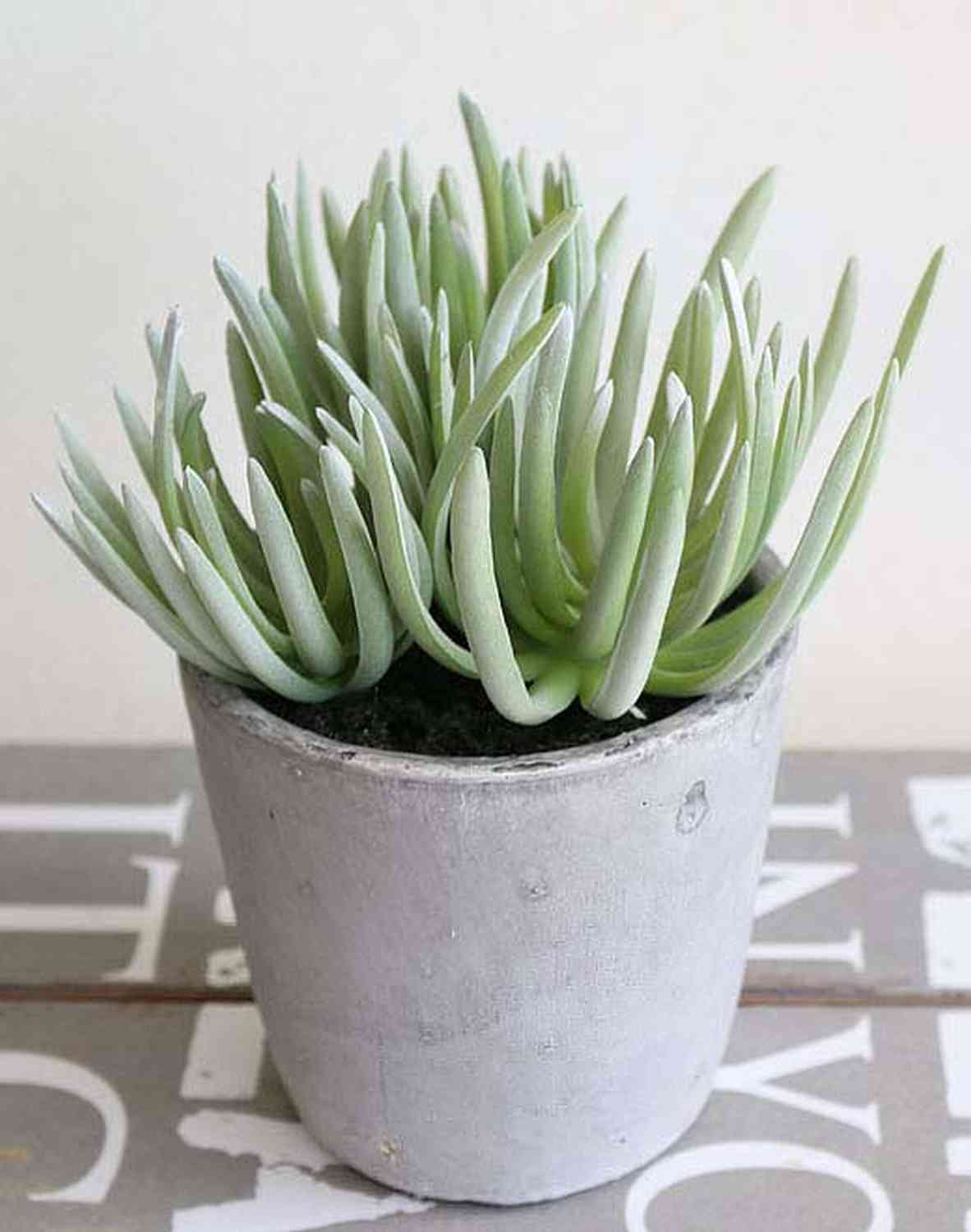 Pachyphytum longifolium artificiale SHERRI in vaso di cemento, grigio-verde, 20cm