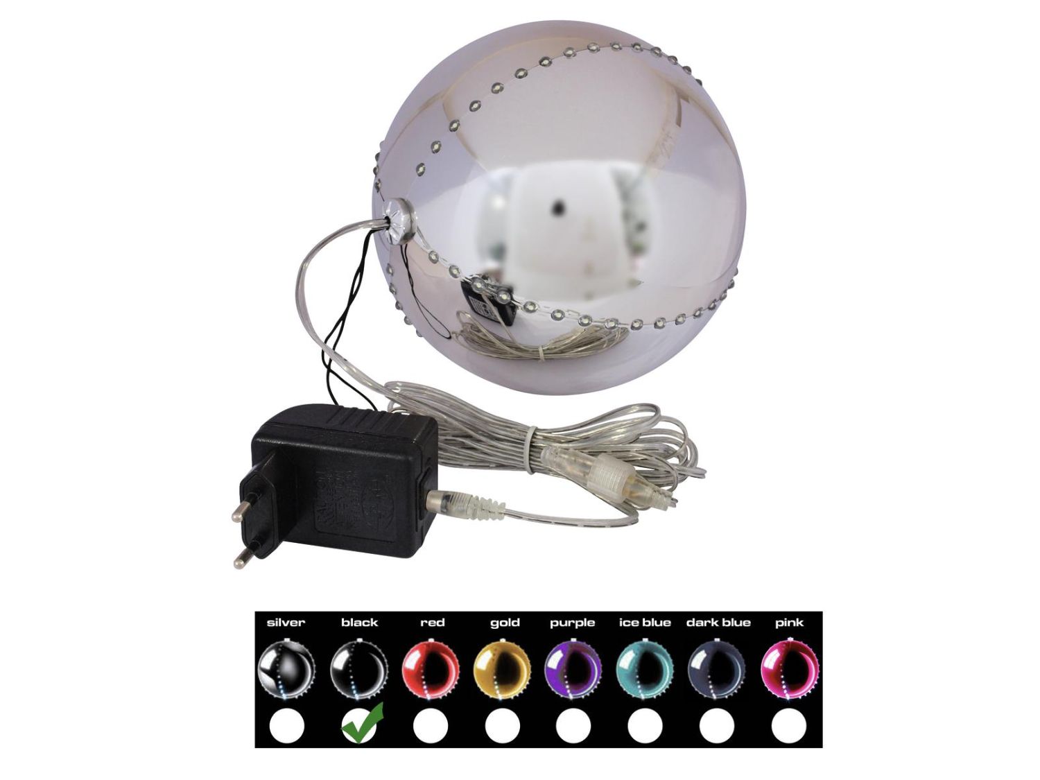 Pallina per l'albero di Natale LUVELIA con LED, nero brillante, Ø15cm