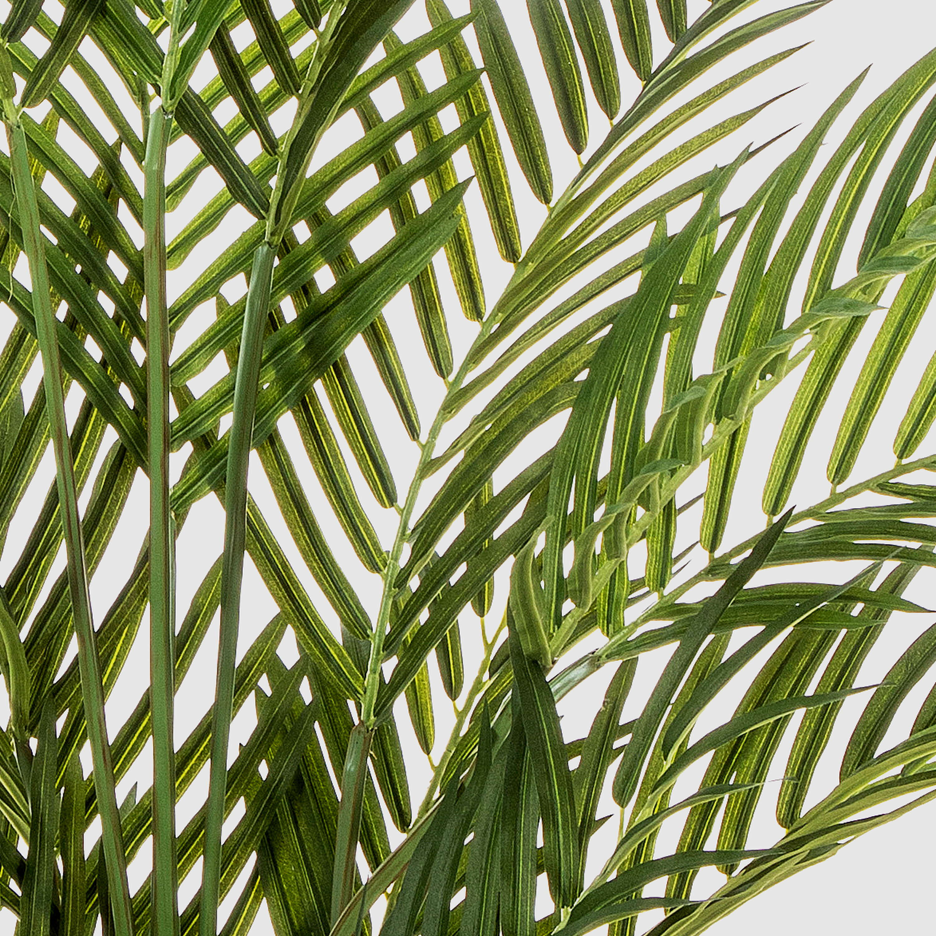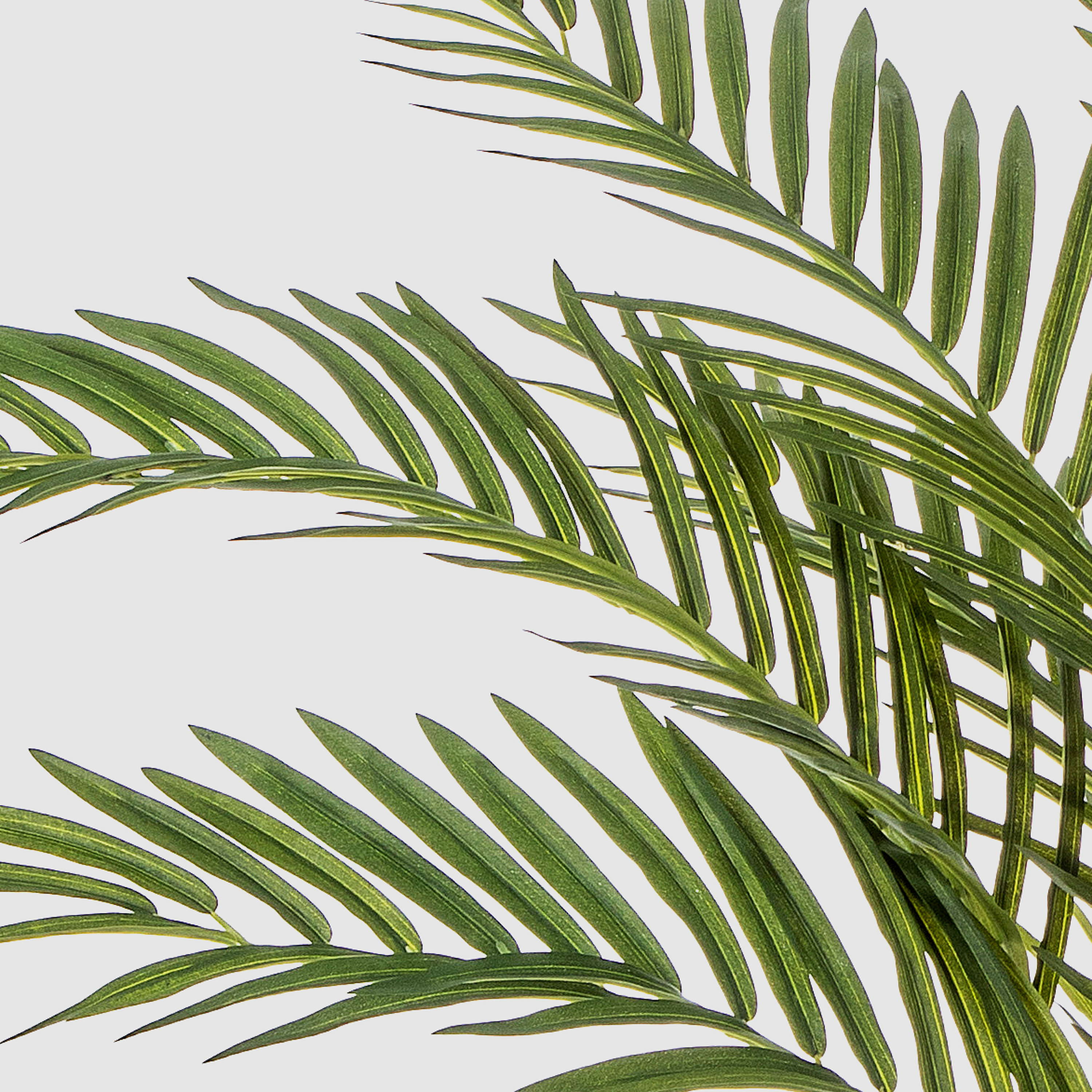 Palma finta di areca in aspetto naturale LUVA e in vaso di cemento. Con un'altezza di 130 cm la palma decorativa si adatta bene all'ufficio o al soggiorno