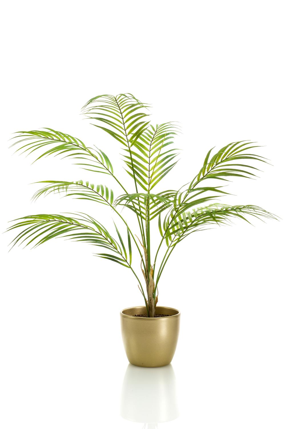 Palma chamaedorea artificiale ALUVIAL in vaso di ceramica dorato, 85cm
