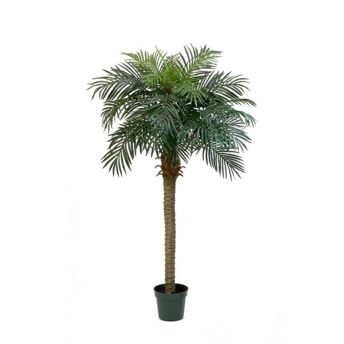 Graziosa palma da dattero decorativa dal fusto artificiale, alta complessivamente ca. 180 cm e con 28 fronde.